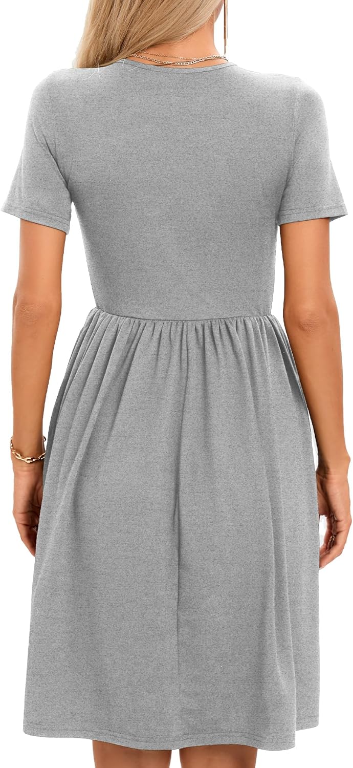 Women’s Summer Work Loose Fit Swing T-Shirt Flowy Sundress with Pockets