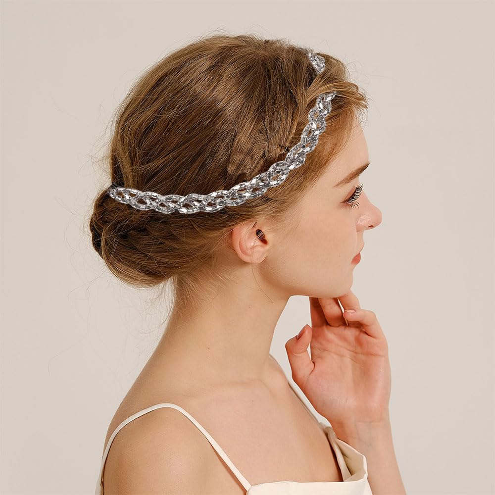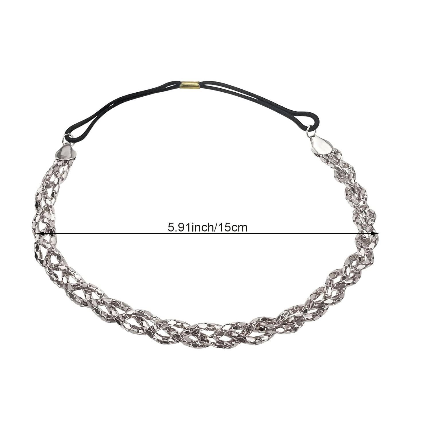 Add a touch of glamour to your hairstyle with these stunning twisted metal headbands. This elegant 2-piece set includes both gold and silver-toned headbands, perfect for matching any outfit or occasion. The intricate twisted metal design creates a dazzling sparkle effect that catches the light beautifully, making these headbands ideal for special events like weddings, proms, festivals, or parties. Each headband features a comfortable elastic band that provides a secure yet gentle fit. The versatile design works well with various hairstyles – wear them as a classic headband, or style them as a crown for a more dramatic look. The durable metal construction ensures these accessories will maintain their shape and shine through multiple wears. These sophisticated hair accessories add the perfect finishing touch to both formal and casual looks, making them a must-have addition to your accessories collection.