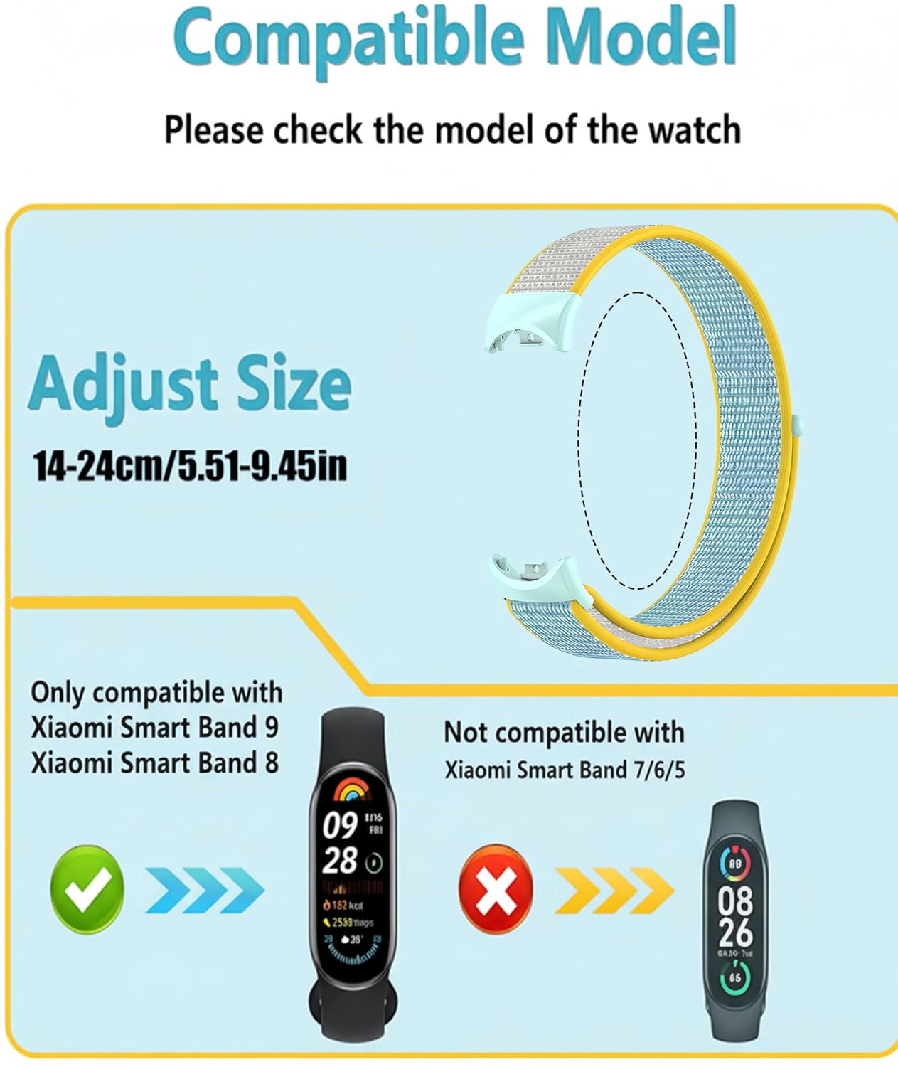 Stable and Customizable Fit: Featuring a robust connector, these replacement straps for Mi Band 8/9 stay firmly in place. The adjustable buckle allows for a personalized fit that accommodates a wide range of wrist sizes .