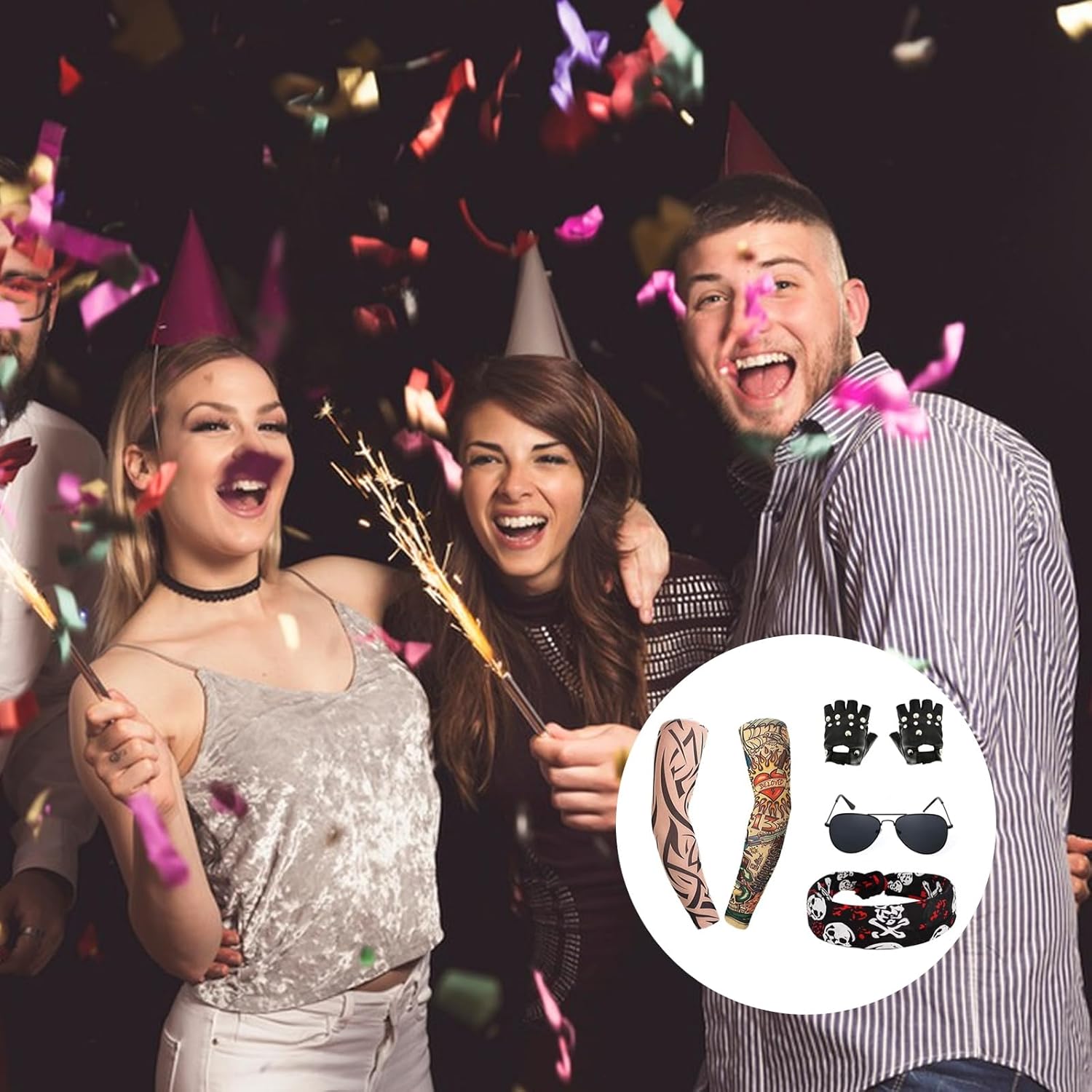 Schwarze Perücken bestehen aus hochwertigen Kunstfasern, die weich und leicht sind. Diese Arm-Sonnenschutzhüllen sehen echt und nahtlos aus; sie lassen sich leicht öffnen und schließen. Dehnbares Stoffmaterial.