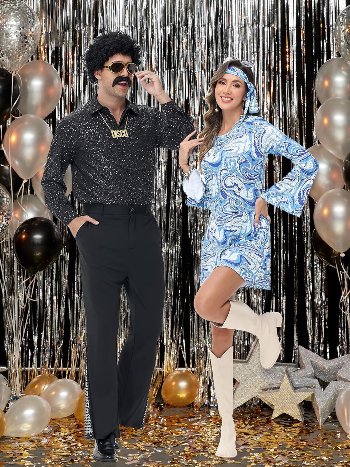 – Accessories: Complete the look with a pair of classic gold sunglasses, a stylish black beard, and a shiny gold chain. These accessories add the authentic 70s vibe you’re looking for.