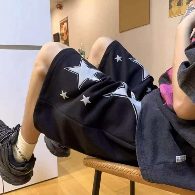 Women’s Y2K Baggy Shorts Star Aesthetic High Waist Wide Leg Athletic Pants Vintage Fashion Summer Streetwear.