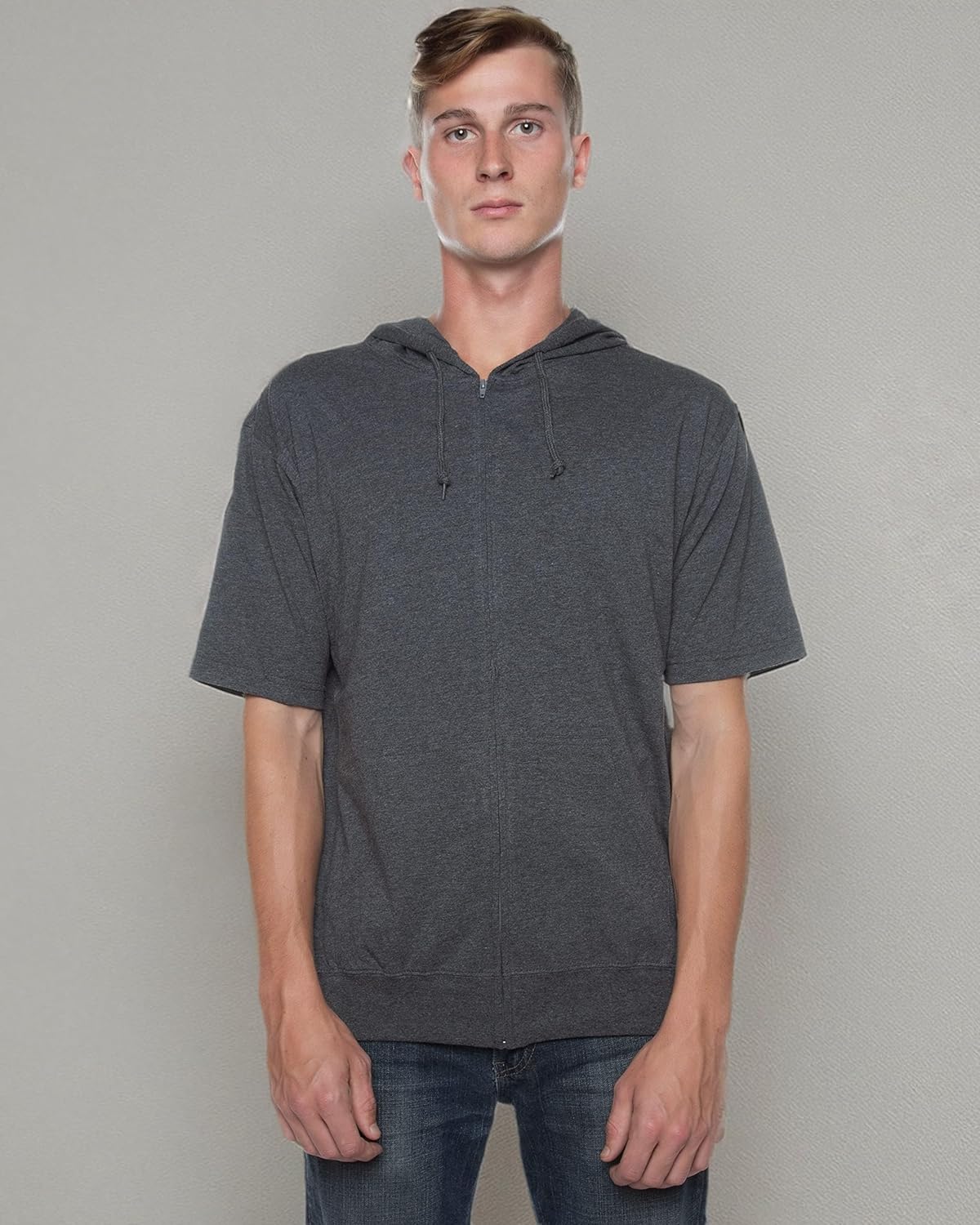 Cottonhood Unisex Casual Short Sleeve Zip Hoodie, Lightweight Jersey Zip Up Hoodie for Men and Women