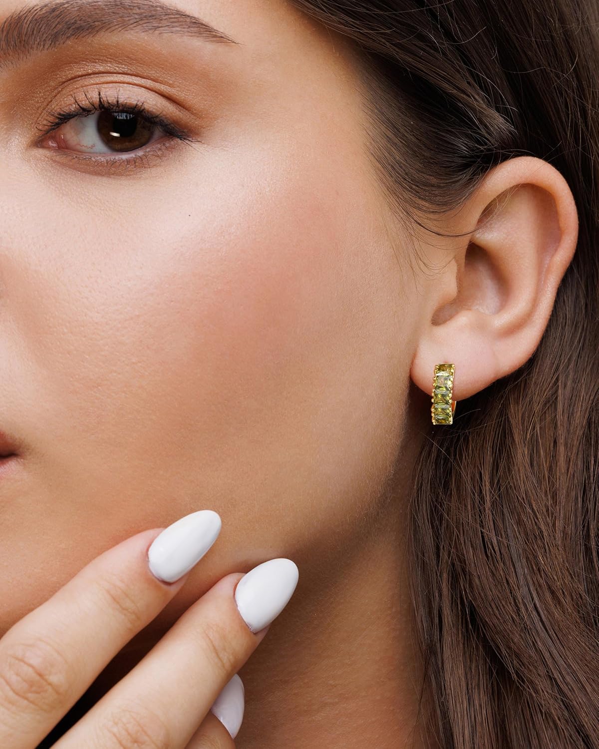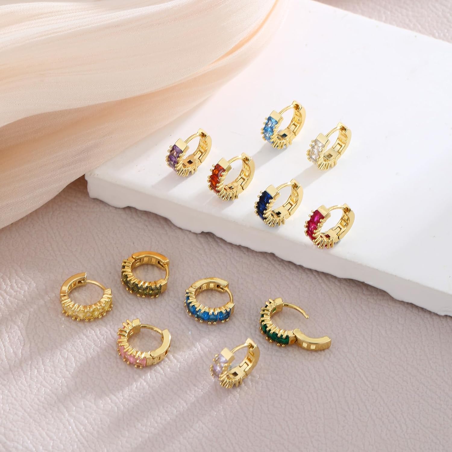 Small Gold Hoop Earrings for Women, 14k Gold Plated Mini Hypoallergenic Cubic Zirconia Huggie Hoop Earrings Birthstone Gold Huggie Earrings Jewelry for Women