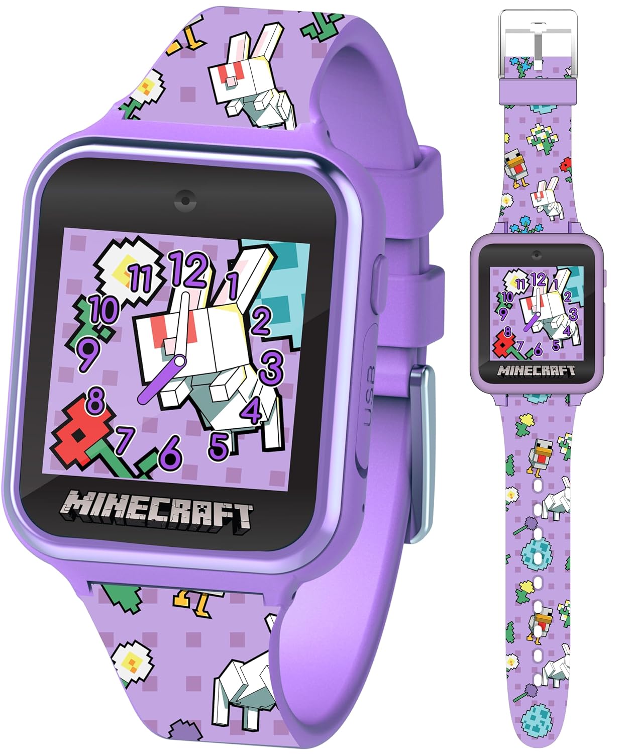 Accutime Minecraft Kids Smartwatch with 10 Watch Faces, Selfie&Video Camera, Step Counter, Voice Recorder, Fun Games, Timer, Stopwatch, Alarm, Calculator,&Wallpapers – Fits Wrists 5.5″-8.0″, Purple,