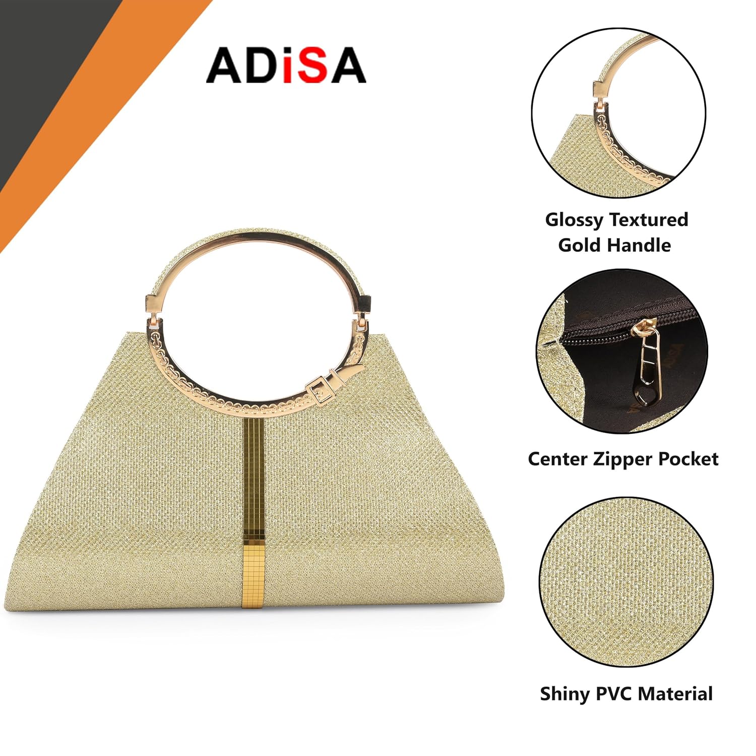 Durable and Superior quality formal party clutch with round metal handle made in PU/PVC with magnetic closure. Ideal for party, clubbing, formal functions and general outing.