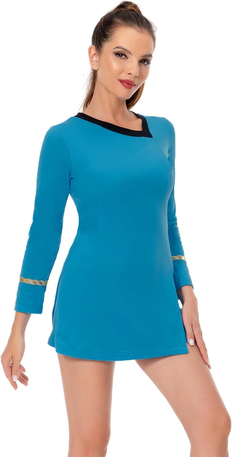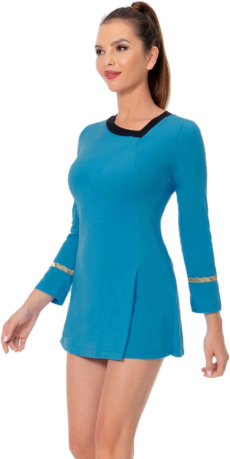 Zhinina Women Shirt Dress Long-Sleeve Uniform Bodycon Top Classic Cosplay Costume Movie Work Clothes Outfit
