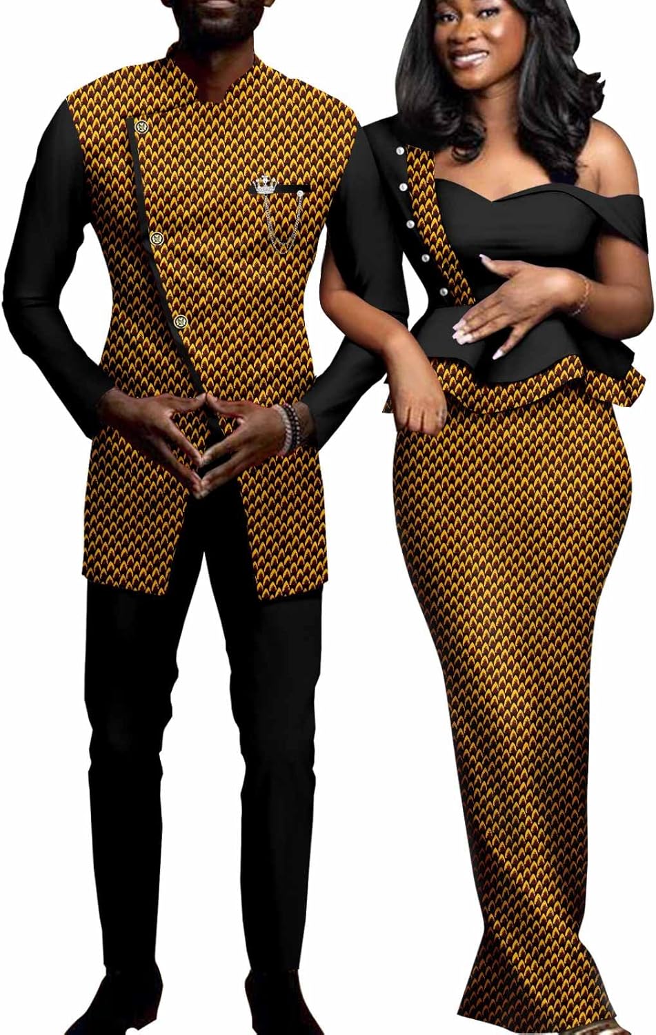 African Couple Outfits Women Print Wax One Shoulder Pencil Dress with Men Dashiki Jacket Shirt and Pants Sets