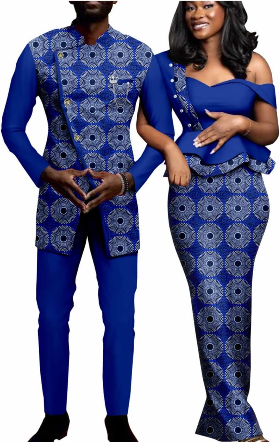 African Sexy Print Dresses for Women Matching Men Outfits Jacket and Pant Sets