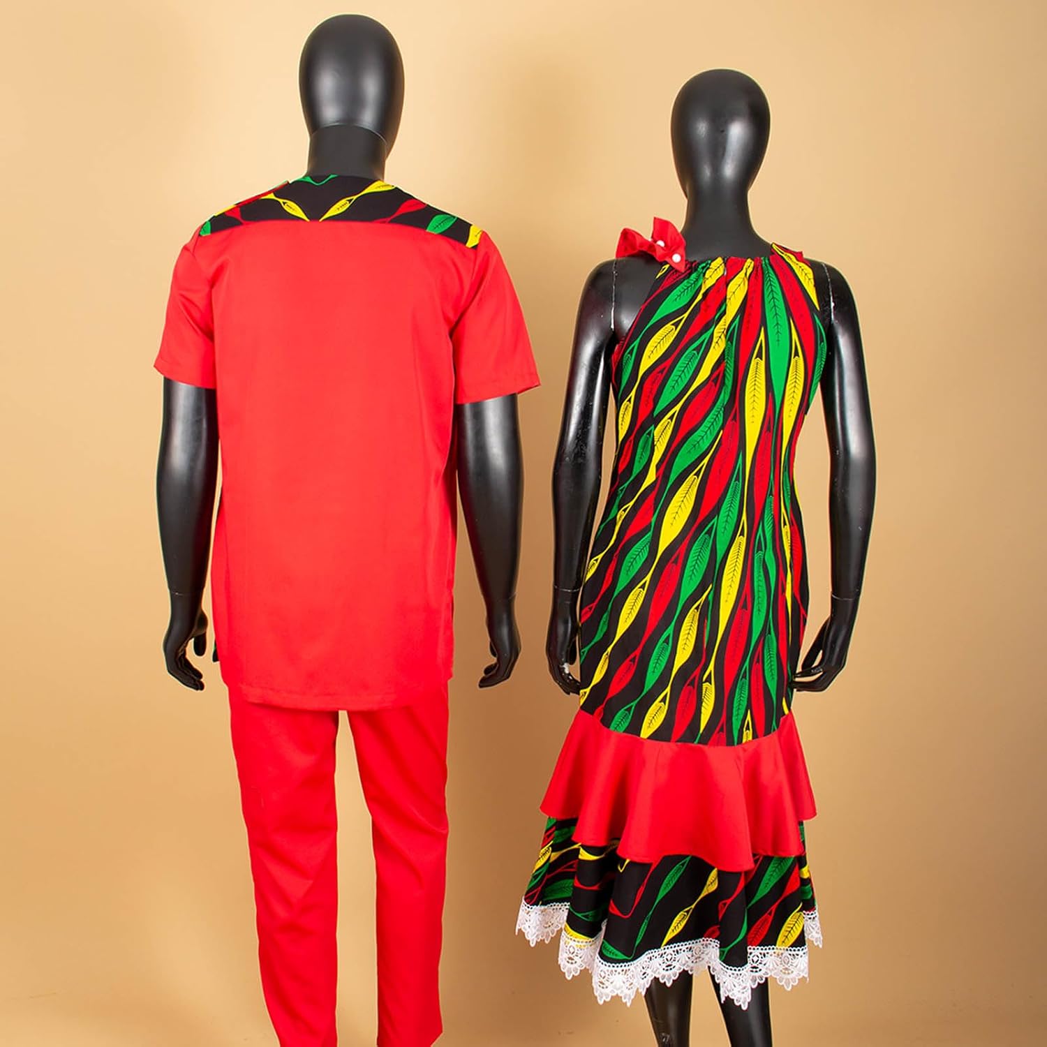 African Sexy Print Ruffles Lace Dresses for Women Matching Couple Outfits Dashiki Men Clothes Shirt Top and Pant Sets