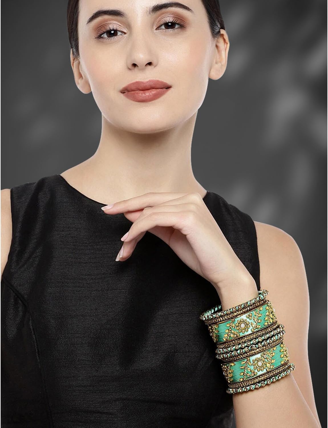 Customers find the bangle set extremely beautiful and appreciate that the color matches outfits perfectly. The size receives mixed feedback, with some saying it fits well while others find it too small. Similarly, opinions on quality are divided between those who find it good and those who consider it terrible.