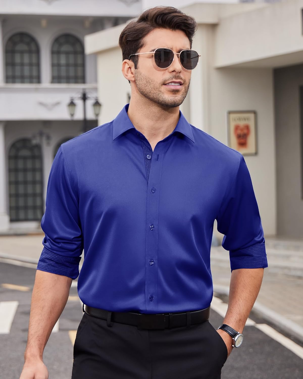 Customers find the dress shirt comfortable with its silky soft material and appreciate its versatility, being able to wear it both casually and dressed up. The shirt receives positive feedback for its quality, with one customer noting its flattering cut, and customers consider it good value for money, describing it as expensive-looking. The fit receives mixed reviews – while some find it suitable for tall men, others say it runs smaller than indicated. The color quality and wrinkle resistance also get mixed reactions, with some customers finding the color perfect while others say it looks cheap in person, and several noting it’s not wrinkle-free.