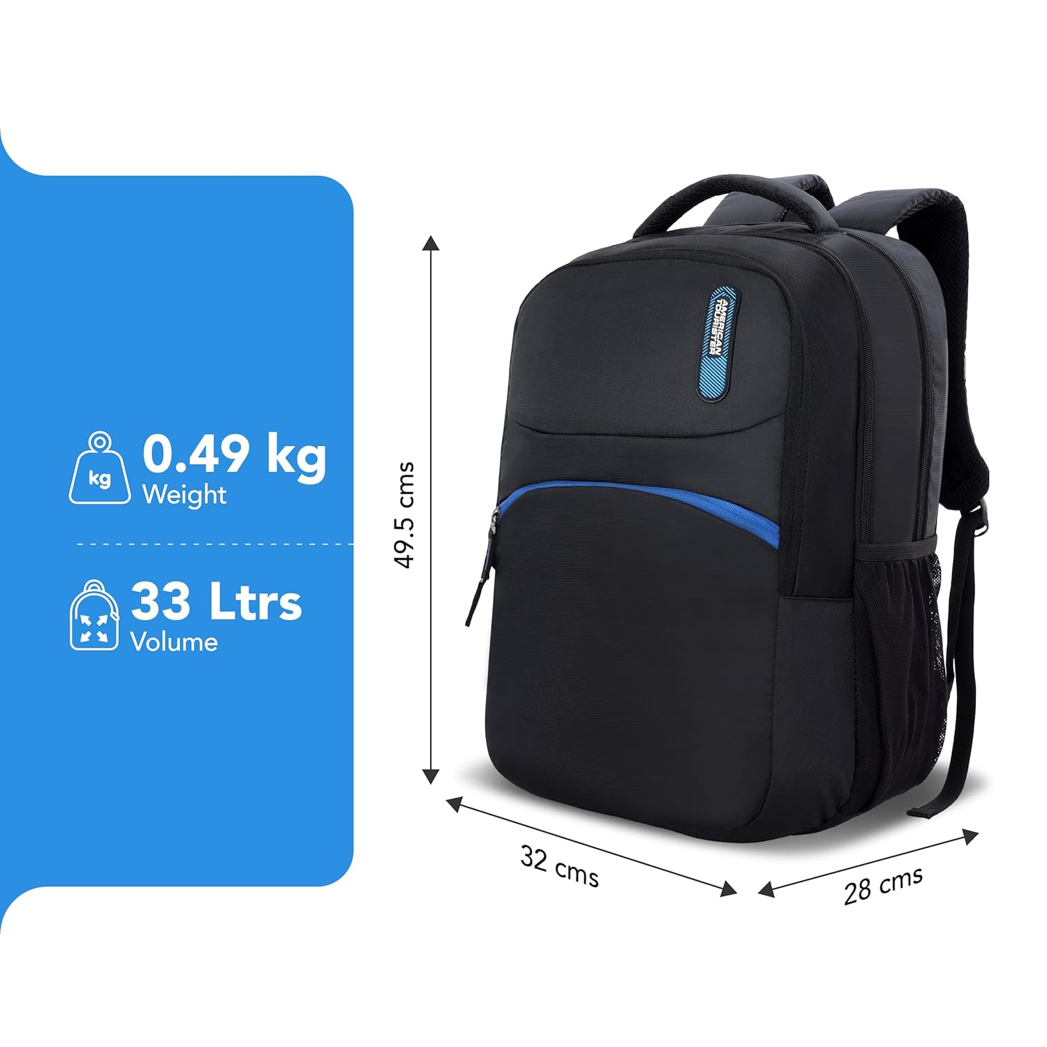 The American Tourister Dolph+ is a 33L office laptop backpack designed for men and women, blending sleek style with practical features. Made from durable polyester, it’s lightweight yet robust for everyday use. The breathable mesh padding ensures lasting comfort, while spacious interiors, a front organizer, and dual side pockets keep essentials and water bottles neatly accessible. With a 1-year global warranty across 120 countries, it offers peace of mind wherever your journey takes you.