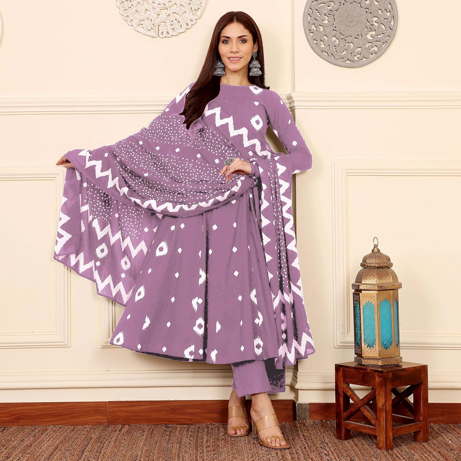 Upgrade your ethnic wardrobe with the ANNI DESIGNER Rayon Anarkali Printed Kurta Set—a perfect blend of style, comfort, and versatility. This three-piece set includes a beautifully printed Anarkali kurta, matching pants, and a coordinating dupatta, crafted from soft, breathable rayon fabric that drapes elegantly. Designed for women who love stylish yet comfortable ethnic wear, this kurta set is perfect for party wear, festive occasions, office casuals, or everyday ethnic styling. The flattering Anarkali silhouette enhances your shape, while the vibrant prints and colors bring a contemporary touch to traditional attire. Pair with sandals, juttis, or minimal accessories for a complete, chic look. This set is easy to maintain, durable, and comfortable, making it a wardrobe essential for modern women seeking effortless style. Ideal for gifting or personal ethnic wear, it is a must-have kurta set with dupatta for any occasion.