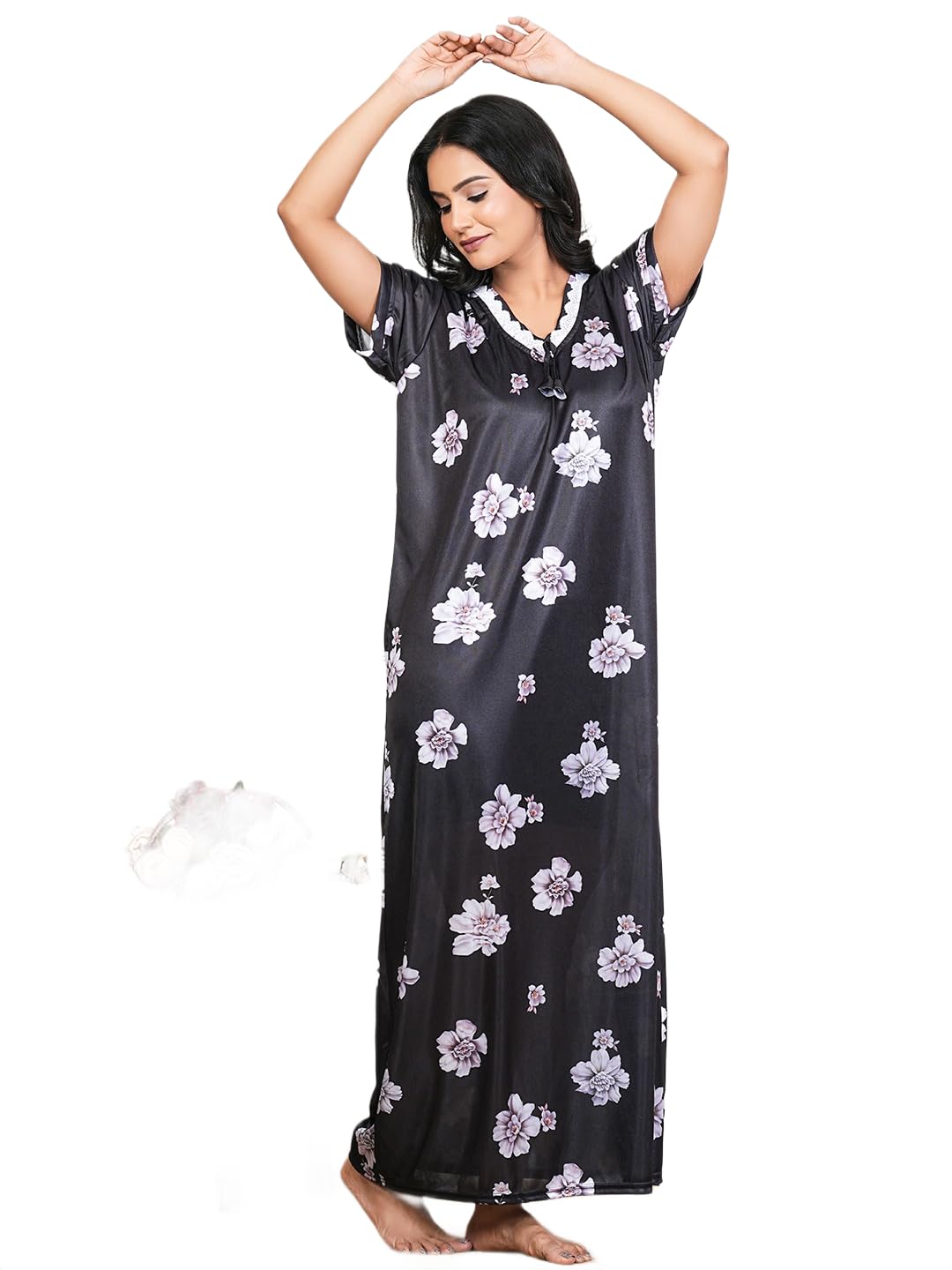 APRATIM Women’s Satin Nighty Maxi Digital Print Nightgown Loose Comfortable Sleepwear Black