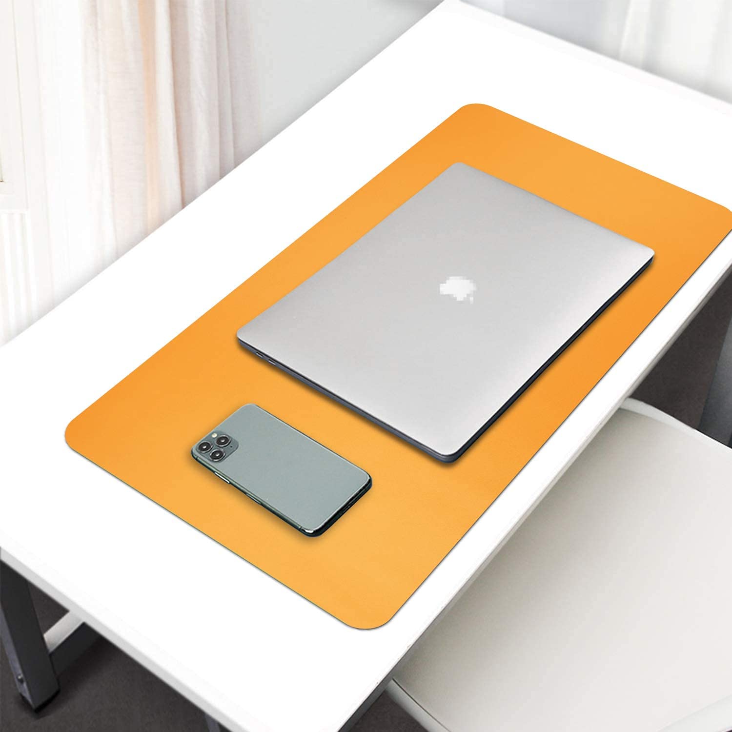 Large Desk Mat Dimensions: Measuring 23.6 x 13.8 inches, (60 x 35 cm) and Color: Blue and Yellow, with a 0.2cm thickness, this oversized mouse pad provides ample space for laptops, keyboards, and mice. Made from durable vegan leather, it protects your desk from scratches, stains, heat, and spills while offering a professional two-tone reversible design in Navy Blue and Yellow.
