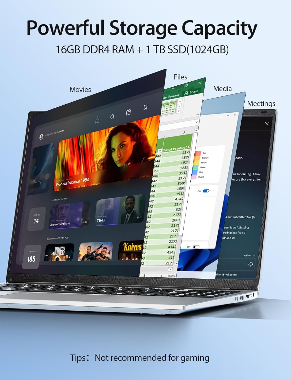 【16GB RAM & 1TB SSD – Seamless Performance】Equipped with 16GB DDR4 memory and a fast 1TB SSD, this laptop ensures smooth performance even with multiple applications running simultaneously. Enjoy ample storage for your files, photos, and videos while efficiently handling complex tasks for business, study, or entertainment.