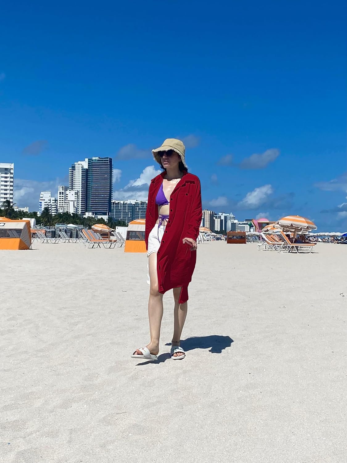 Customers find the swimsuit cover-up flattering, comfortable, and perfect for beach wear, appreciating its lightweight design and breathability. The fit and material quality receive mixed feedback – while some say one size fits perfectly, others find it too long, and while some praise the linen material, others describe it as cheap. Additionally, the cover-up is effective at covering bathing suits, and customers report issues with shrinkage and wrinkles that are difficult to remove.