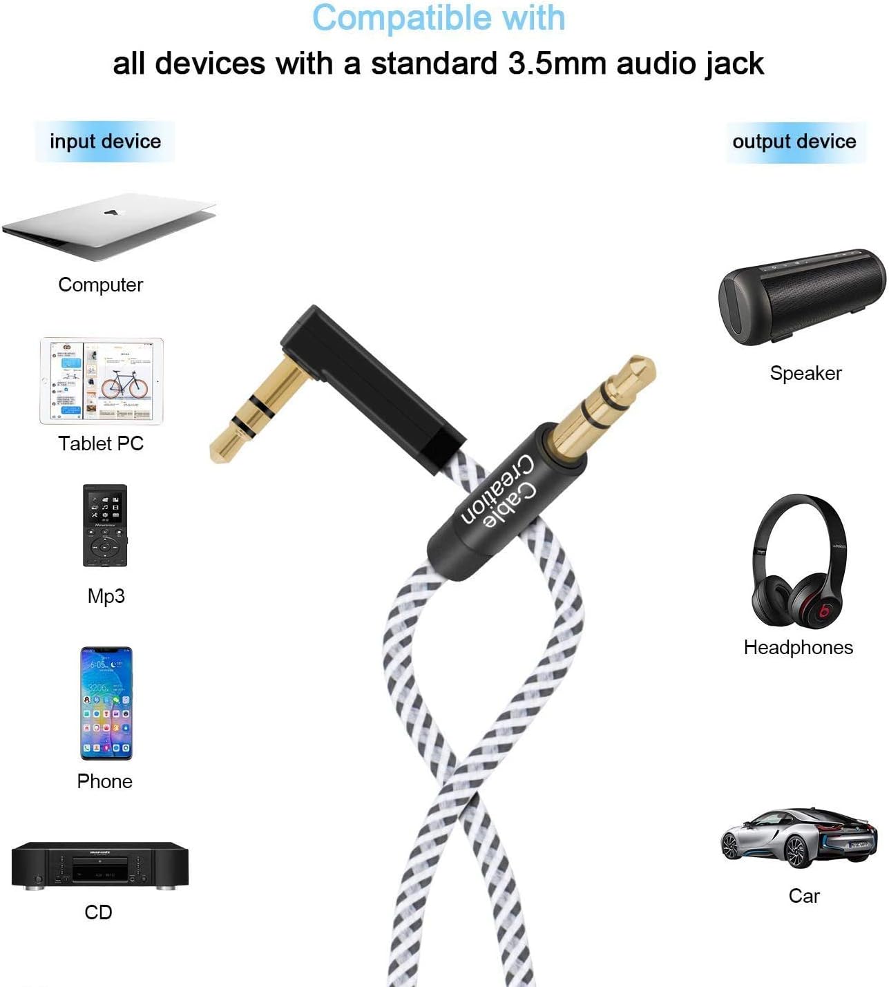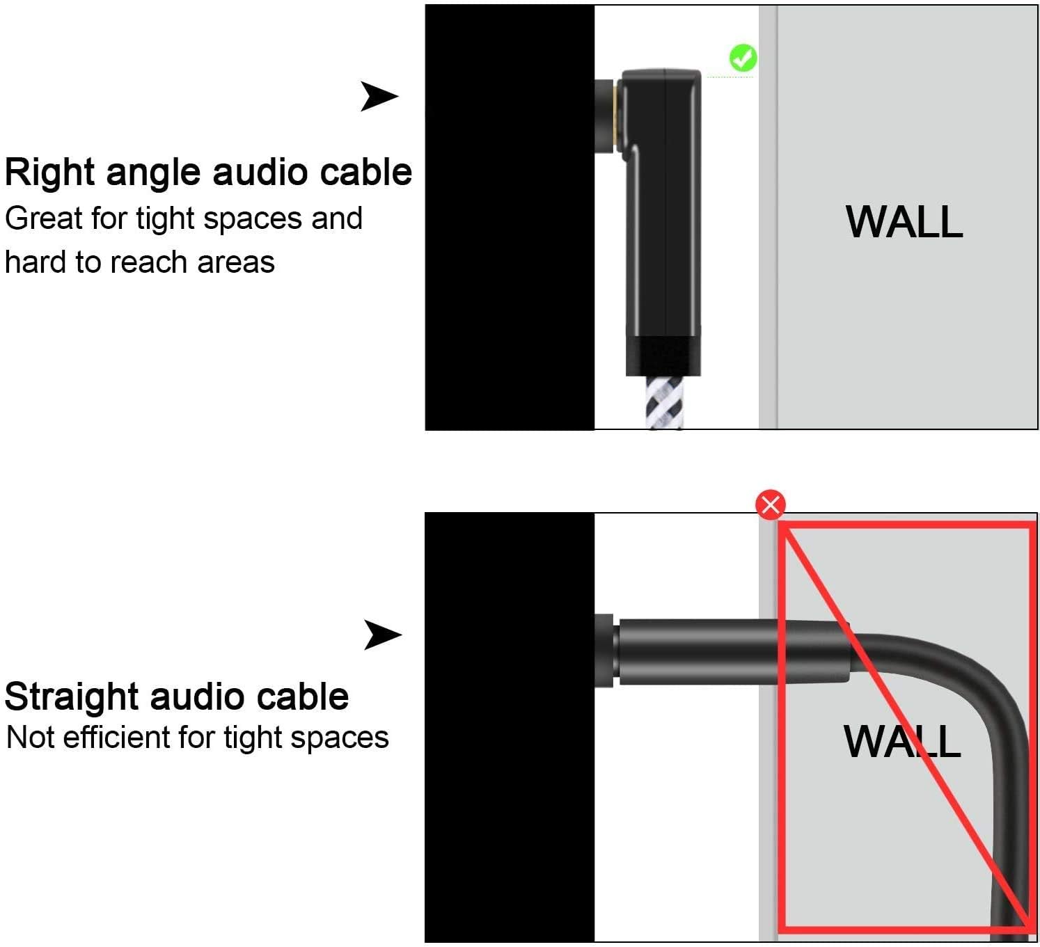 Aux Cable 6ft Right Angle Design: Right angle design for saving spaces. It is great for tight spaces and hard to reach areas.