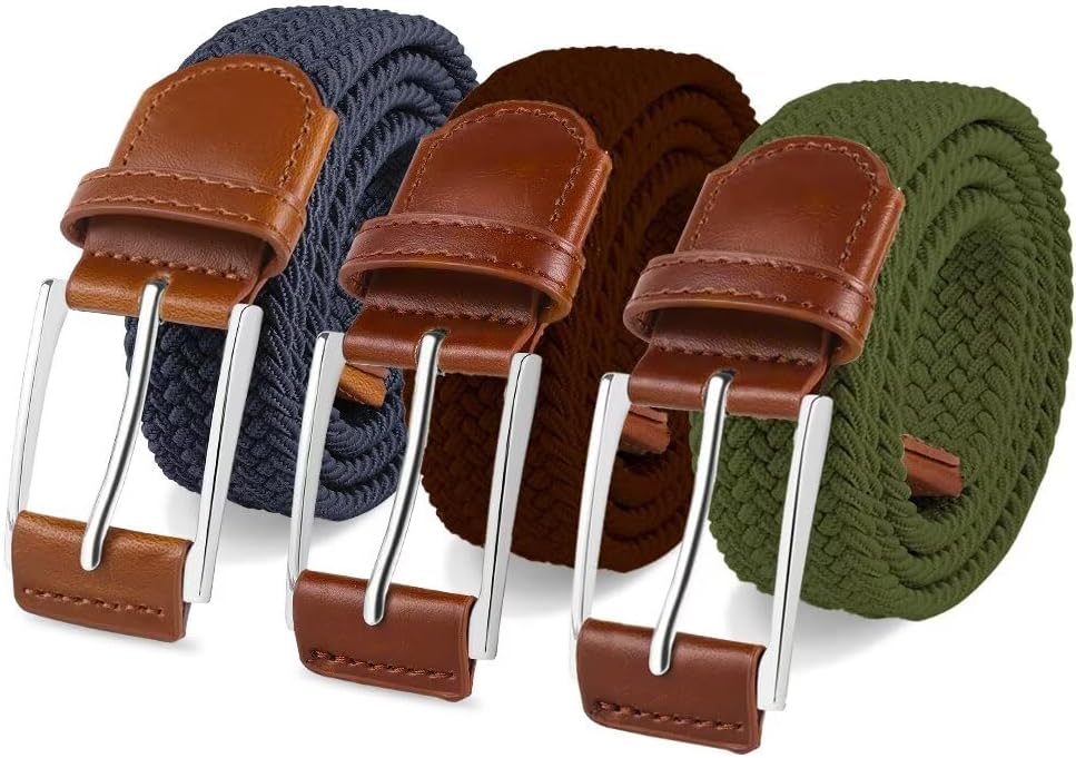 Our belt is made of 60% polyester and 40% elastane, while the buckle is made of high-quality zinc alloy. The buckle easily slides through the woven belt and can be freely adjusted.