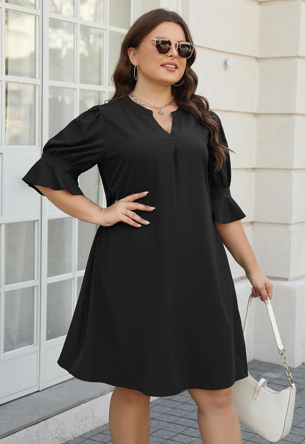 Customers find the dress comfortable and true to size, with one mentioning it’s perfect for work or church. They appreciate its flattering design, with one noting it can be dressed up or down, and its lightweight nature. The material quality receives mixed feedback, with some praising the fabric while others find it thin.