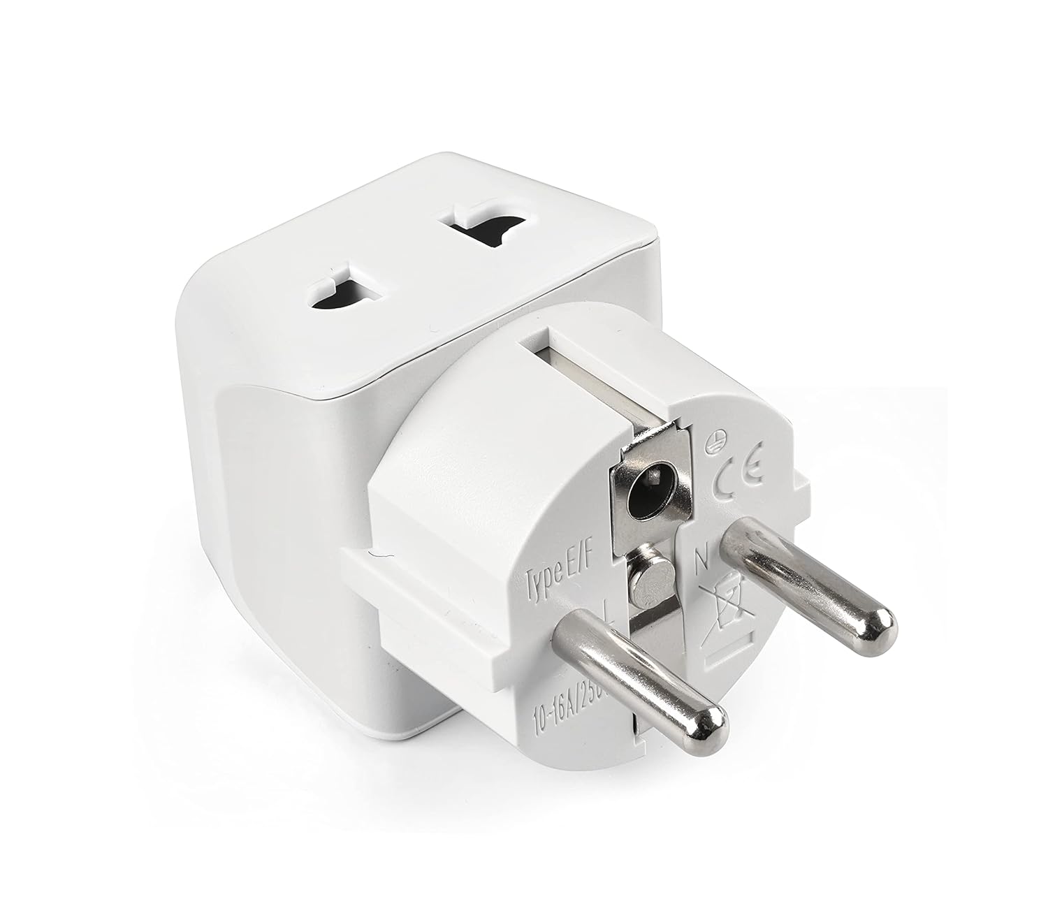 2 IN 1 INPUTS: Ceptics India to Europe plug converter accepts 2 Inputs: 1 Grounded Outlet (3-prong Indian plug), and 1 non-grounded outlet. Allowing you to use two devices at once, saving time.