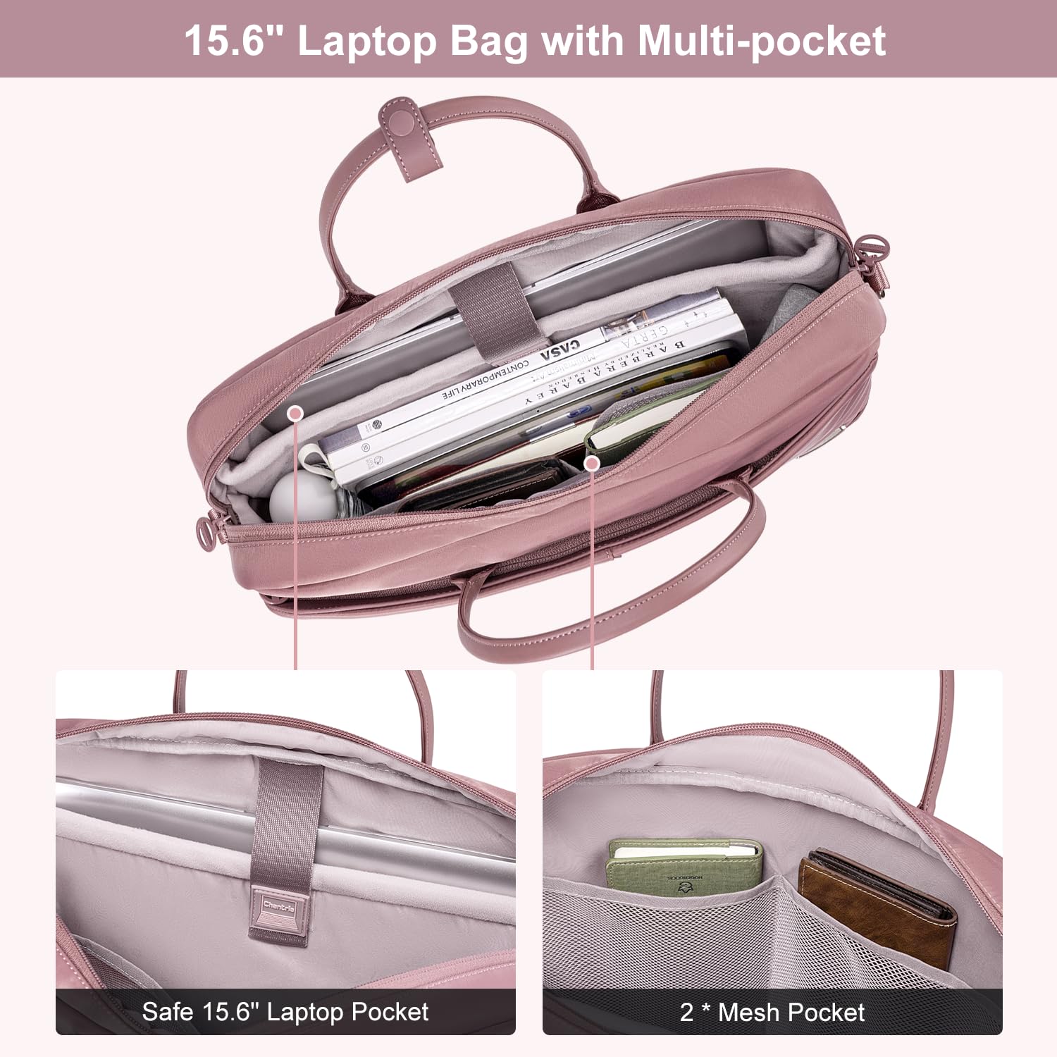 Laptop bag designed for women’s business, large capacity, easy to deal with the workplace. It can store up to 15.6″ laptop, with thick padding and velvet pockets for protection, making it safer to use.
