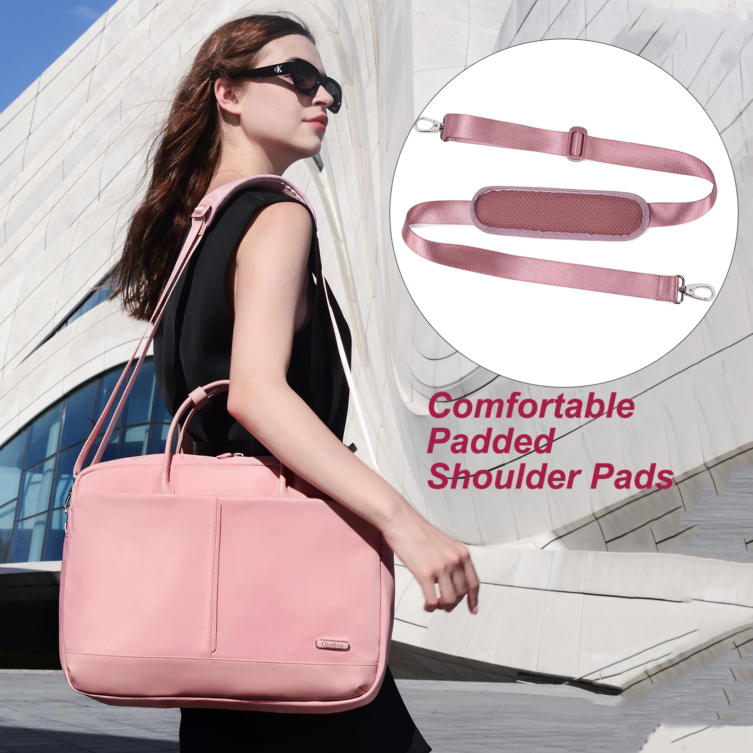 Chantria Laptop Bag for Women 15.6″ Laptop Sling Bag 9L Multi-pocket Stylish Laptop Messenger Bag Padded Comfortable Fashion Ladies Office Bag for Business Travel Work