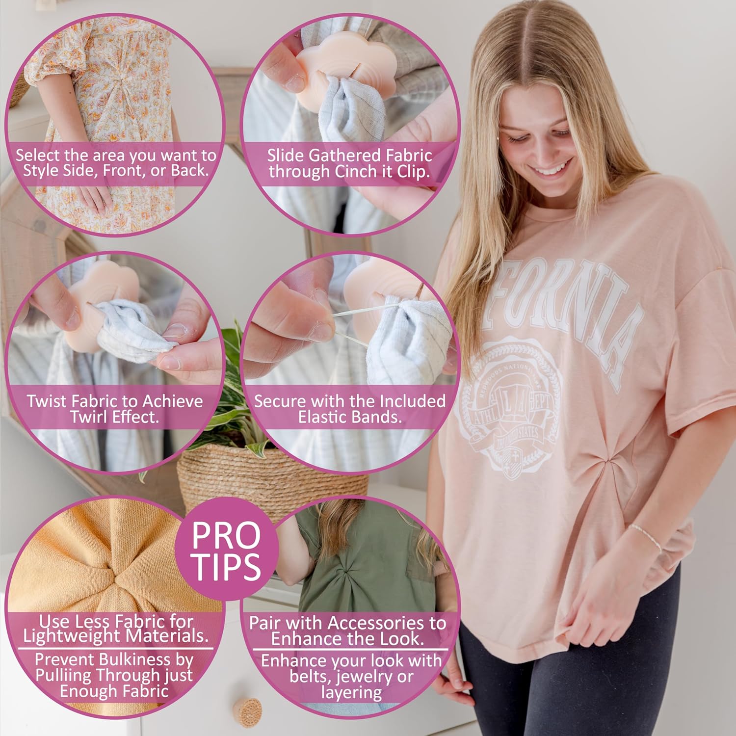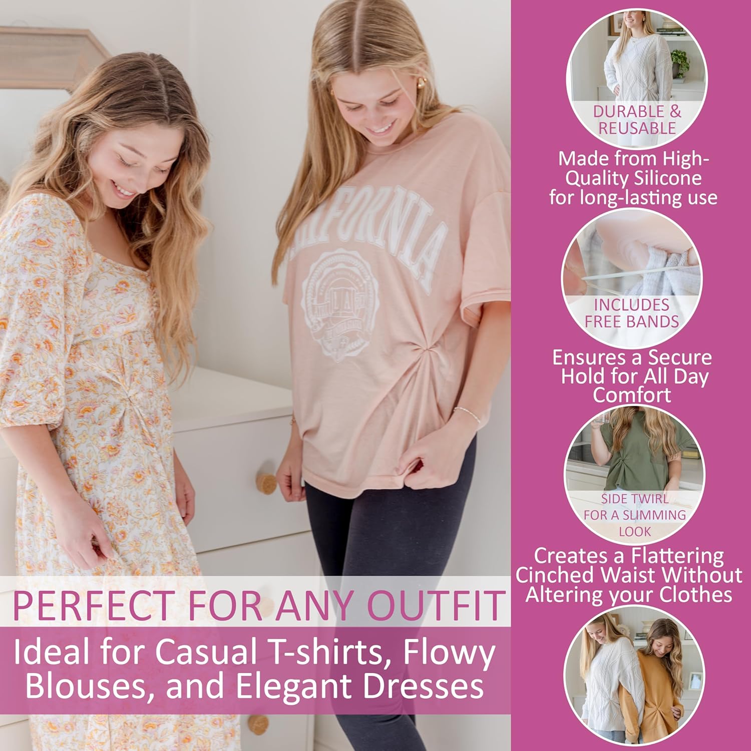 Absolutely! It’s perfect for T-shirts, tunics, dresses, and even oversized sweaters to create stylish, ruched effects.