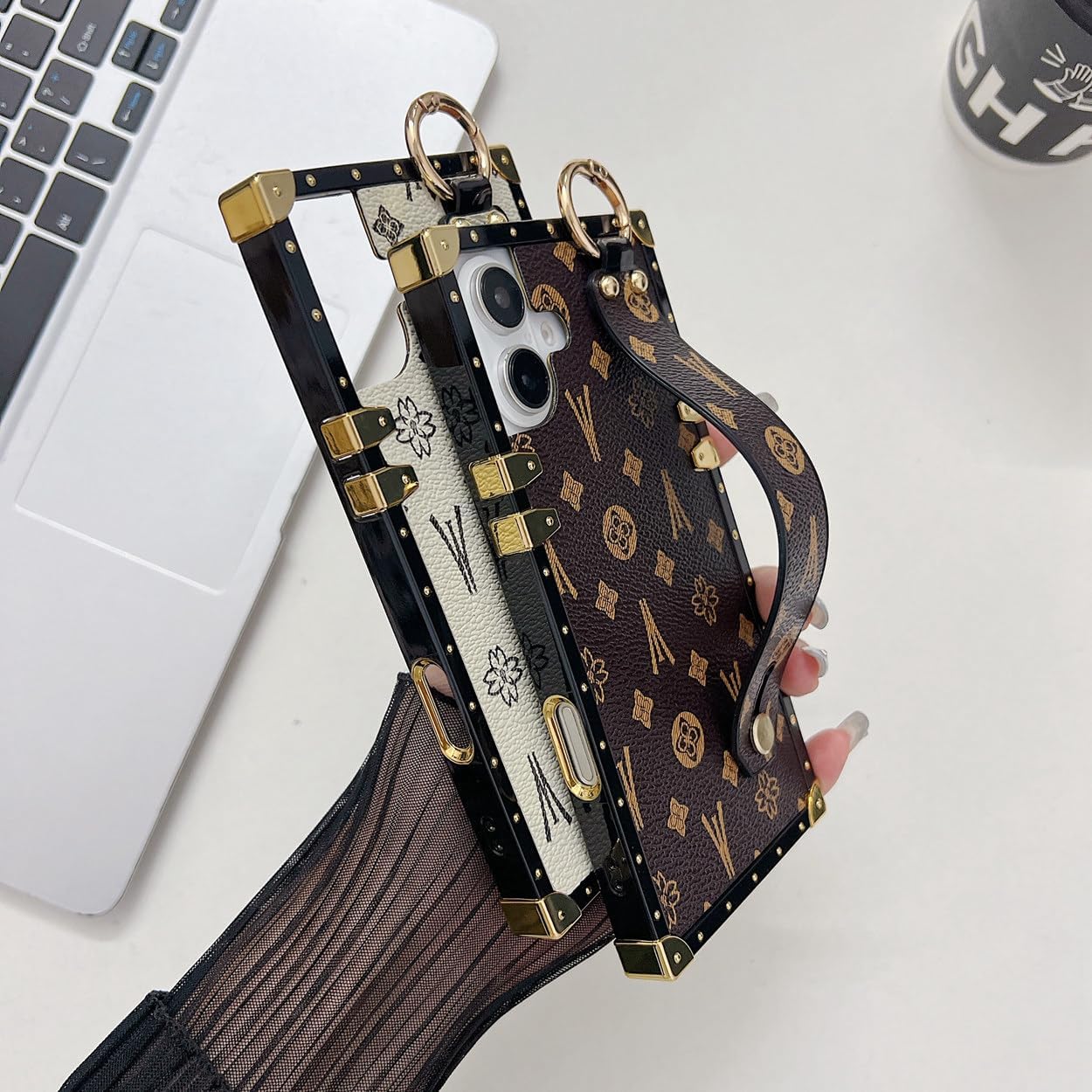 Screen Protection: This Luxury Designer Phone Case With a Stylish Rectangel Strape,The edge of the screen rises, effectively preventing the phone screen from getting dirty or scratched.