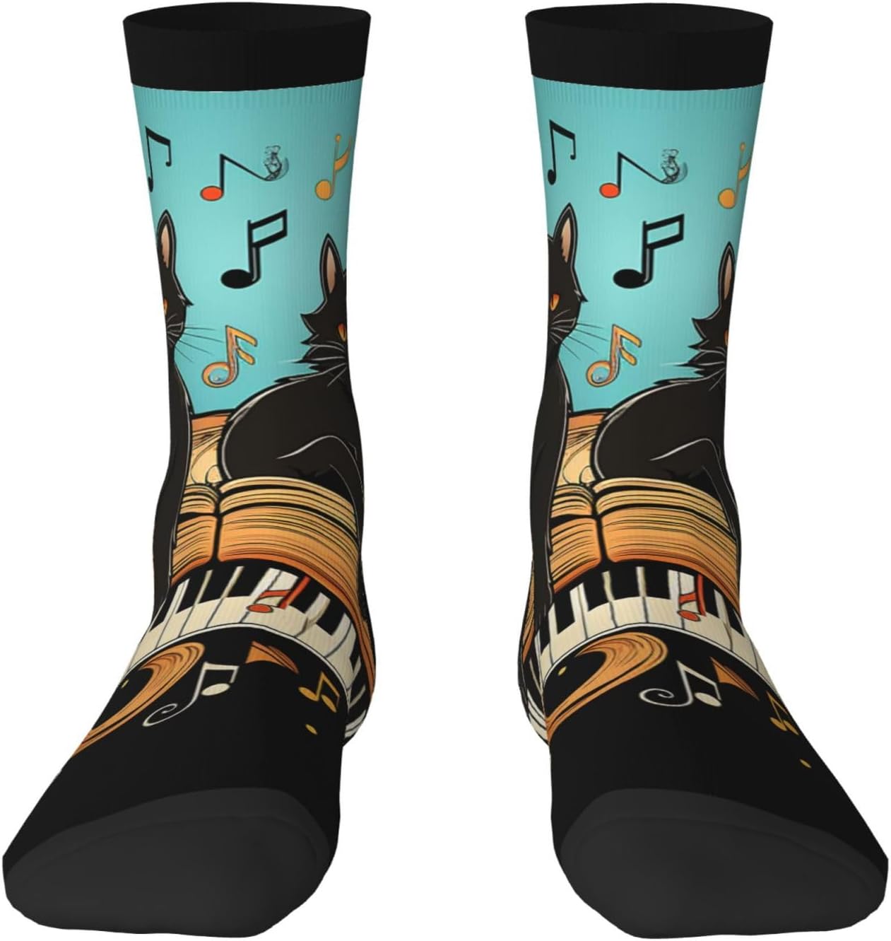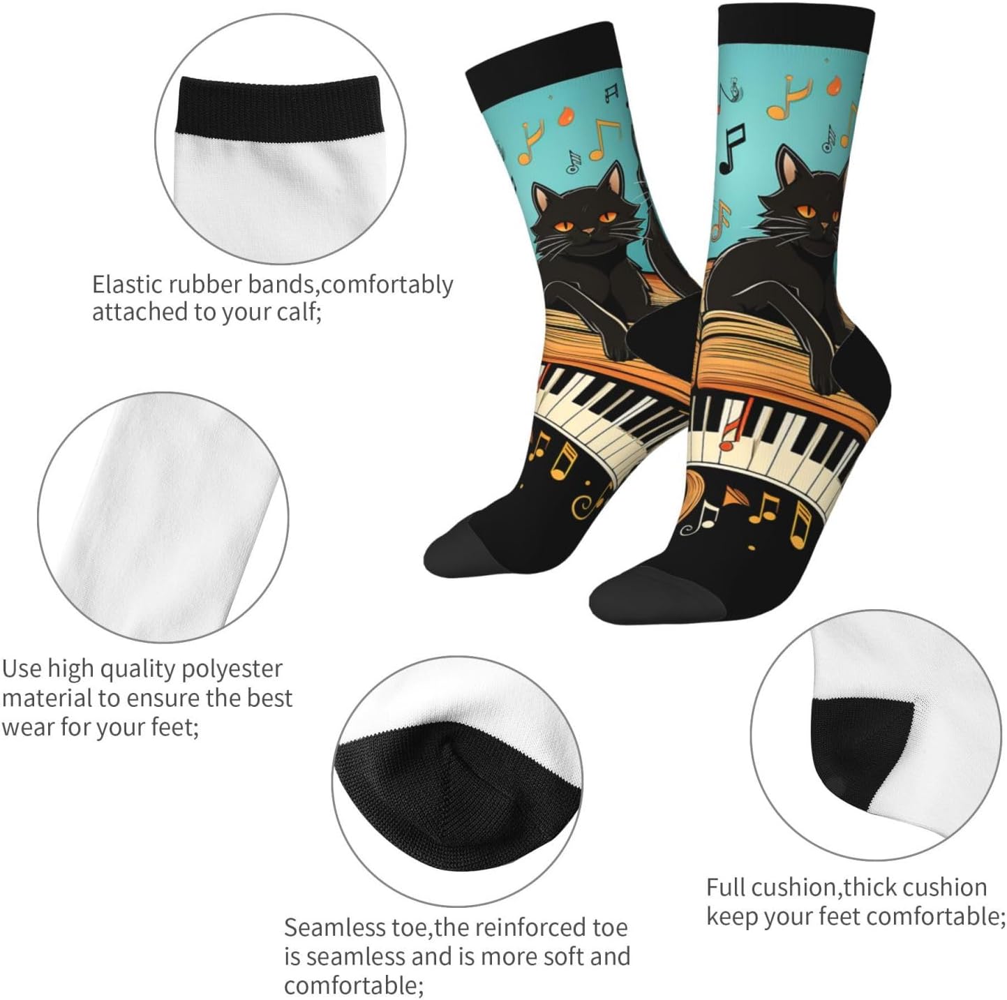 Crew Athletic Socks Moisture-Wicking Running Sock Cats lying on the piano keyboard Casual Calf Socks for Men Women