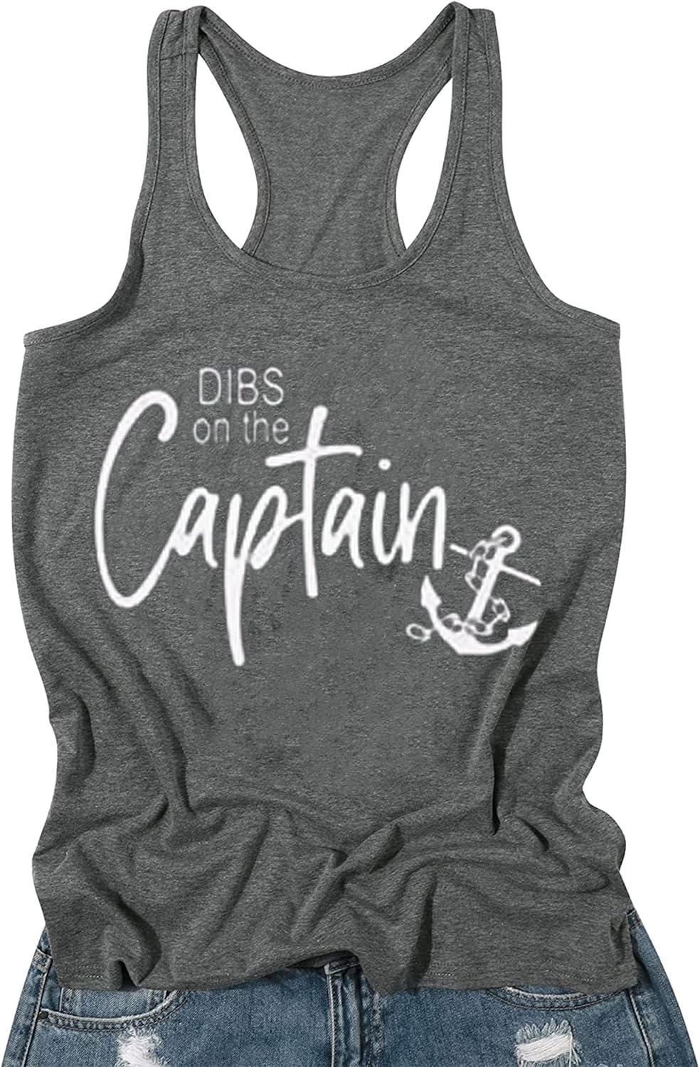 Dibs On The Captain Tank Top for Women, Boat Anchor Graphic Tank Tee, Funny Letter Pirnt, Summer Beach Tank Shirt, Sleeveless, Crew Neck, Casual Vacation Racerback Vest.