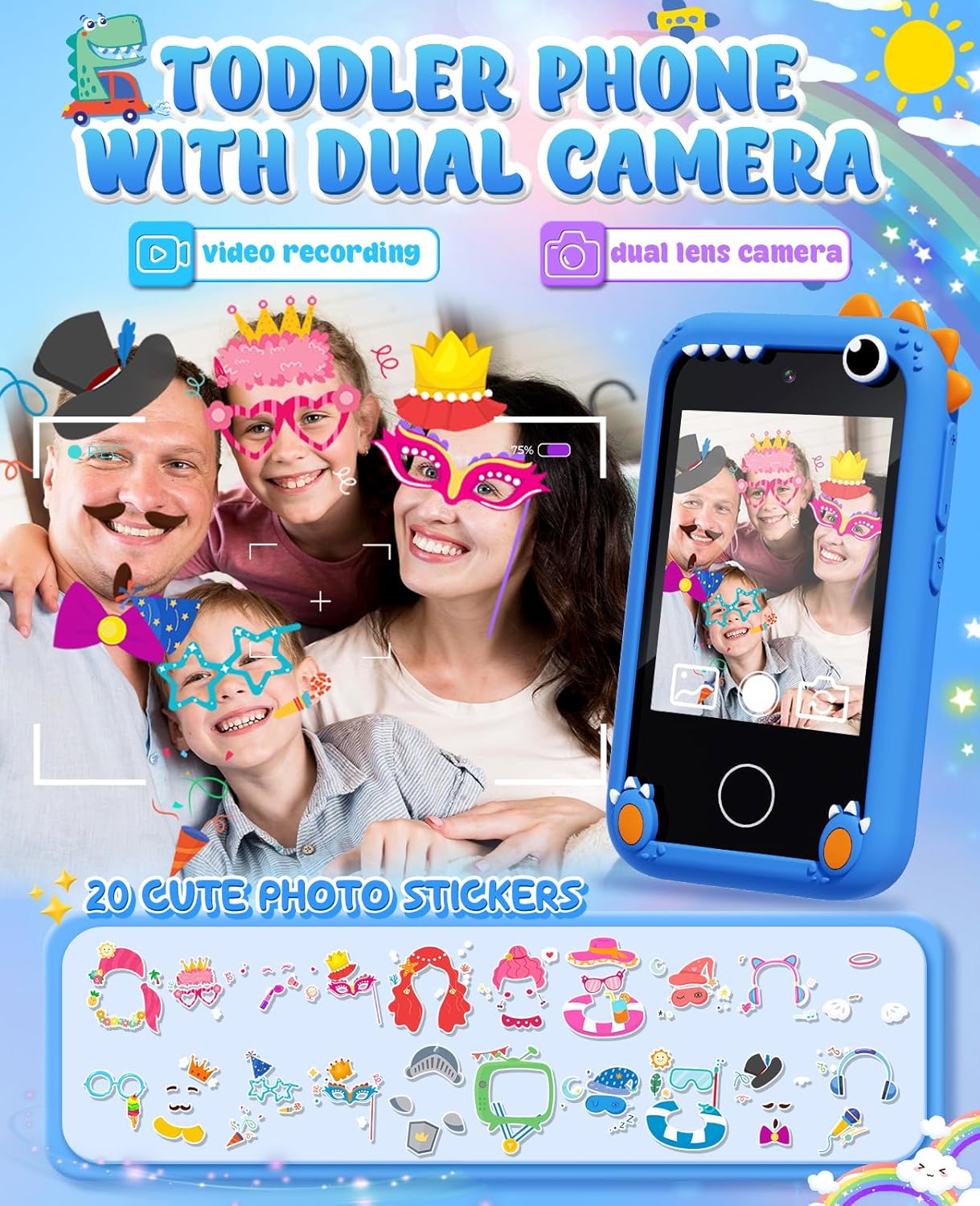 Kids Smart Phone: Introducing our upgraded Kids’ Smart Phone, a 2.8-inch touchscreen device designed for young users. Kids can take fun selfies with stickers and share them with family and friends. The phone comes Supports 14 languages、10 engaging stories and a high-quality speaker that supports a 3.5mm headphone jack, perfect for kids to learn and enjoy music
