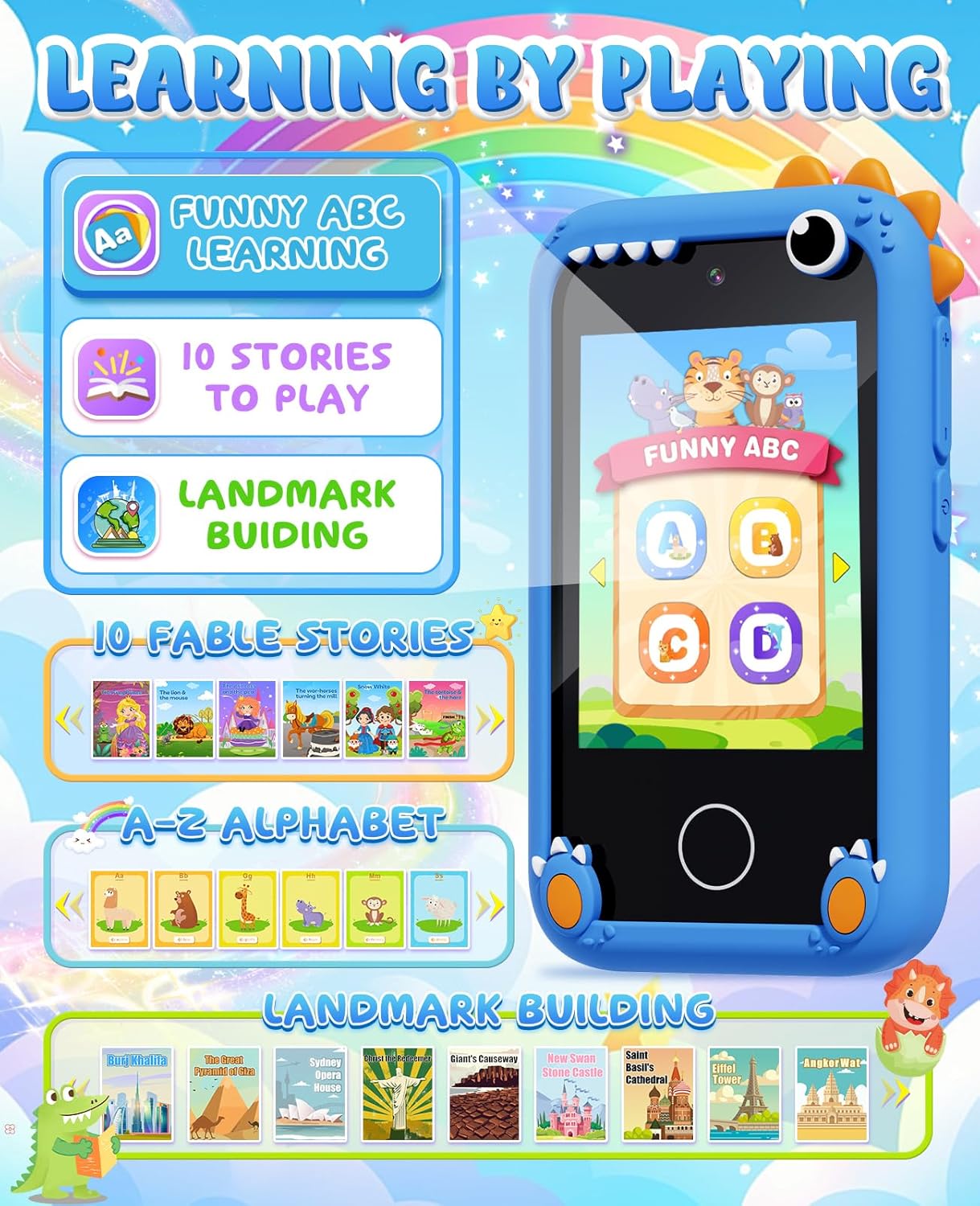 Multifunctional Design: The phone features new learning tools, such as A-Z letters, making ABC learning easy and fun. It also introduces 19 iconic landmarks from different countries to enrich children’s knowledge and inspire curiosity. Multiple game modes enhance logical thinking, reaction skills, and hand-eye coordination. An anti-addiction mode allows parents to control daily game time.