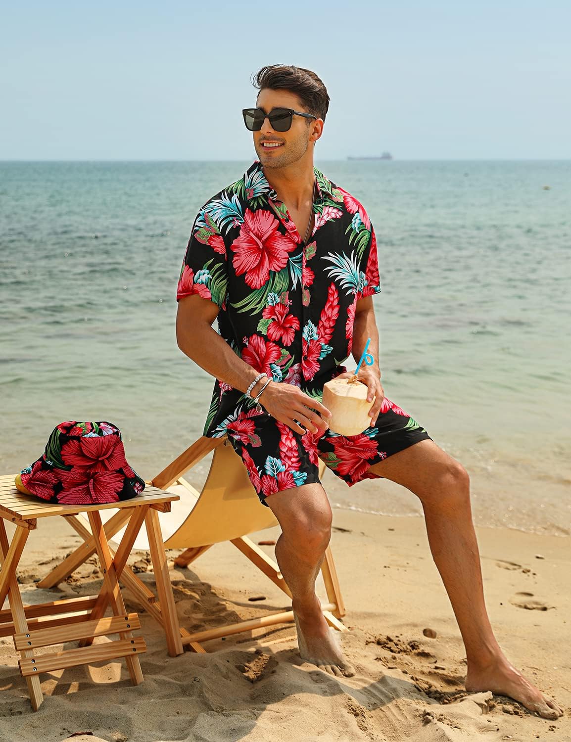 This Man Hawaiian sets made by professional hawaiian beach suit fabric. soft, comfortable, breathable, perfect for summer outings, parties, camp, luau, sun beach, birthday party, vacation, bachelor party, cruise or any daily leisure.