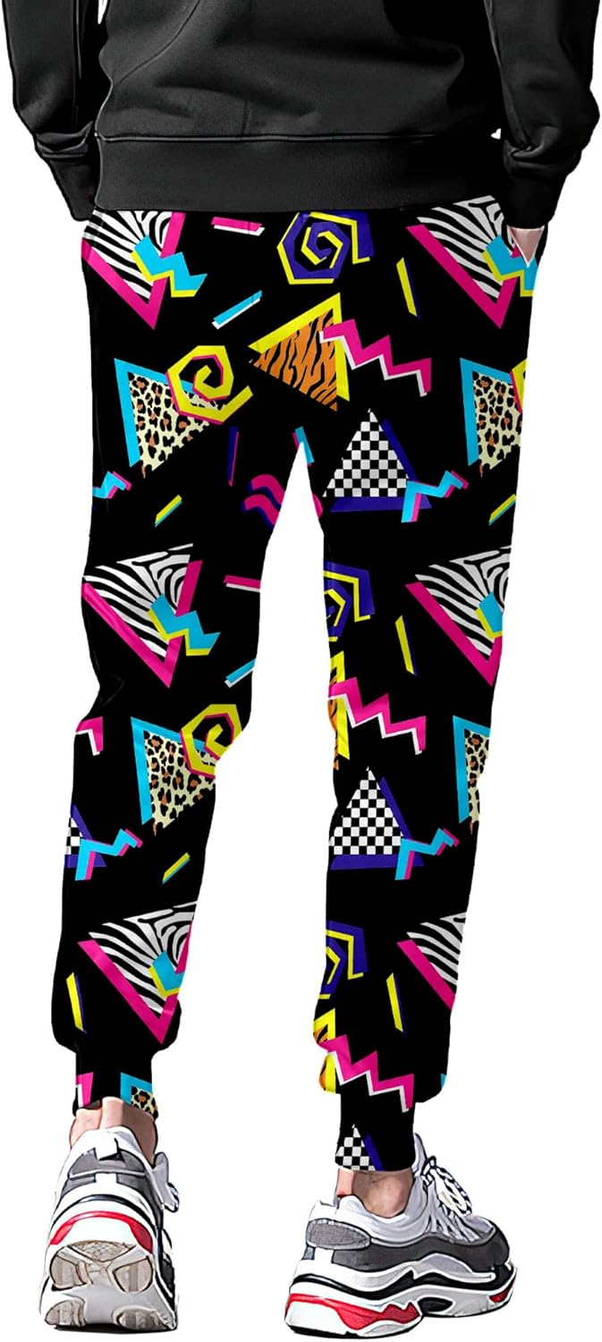 Customers find these sweatpants comfortable and well-fitting, with great quality and durability. They appreciate the style, with one customer noting the bold and fun colors, and another mentioning they’re perfect for an 80’s themed Halloween costume.