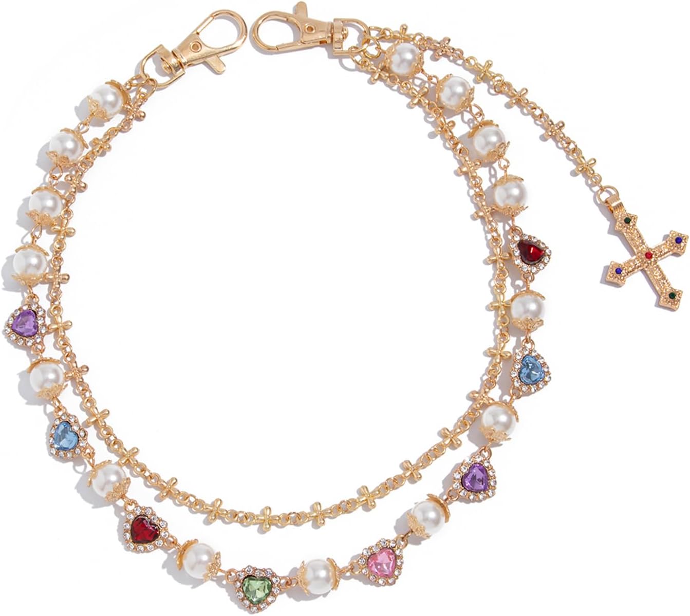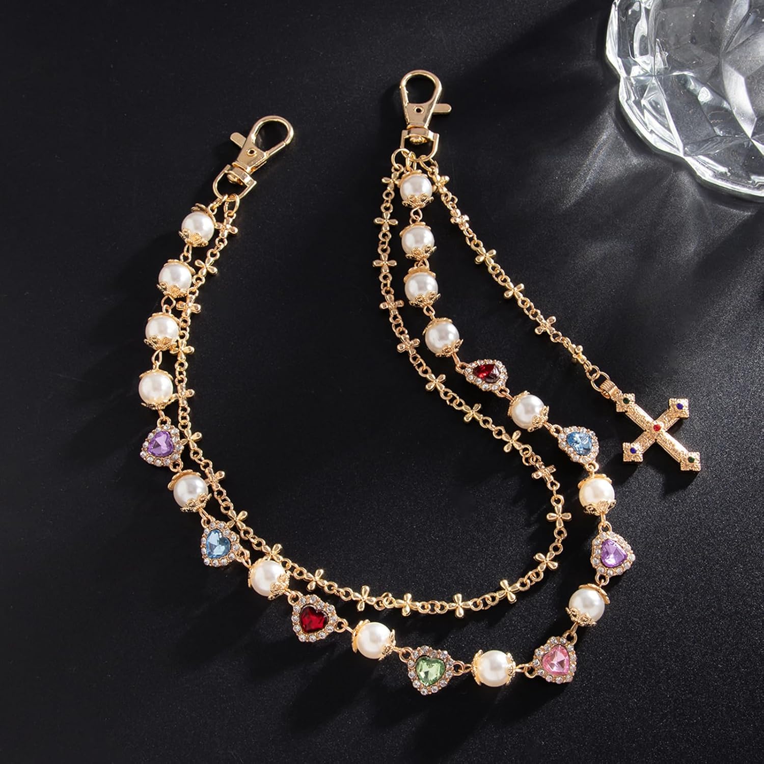 Fashion Layered Pants Wallet Chains – Exquisite Gold Silver Rhinestone Flower Pearl Jean Pocket Chain for Women Men Cute Bag Purse Charms Jewelry
