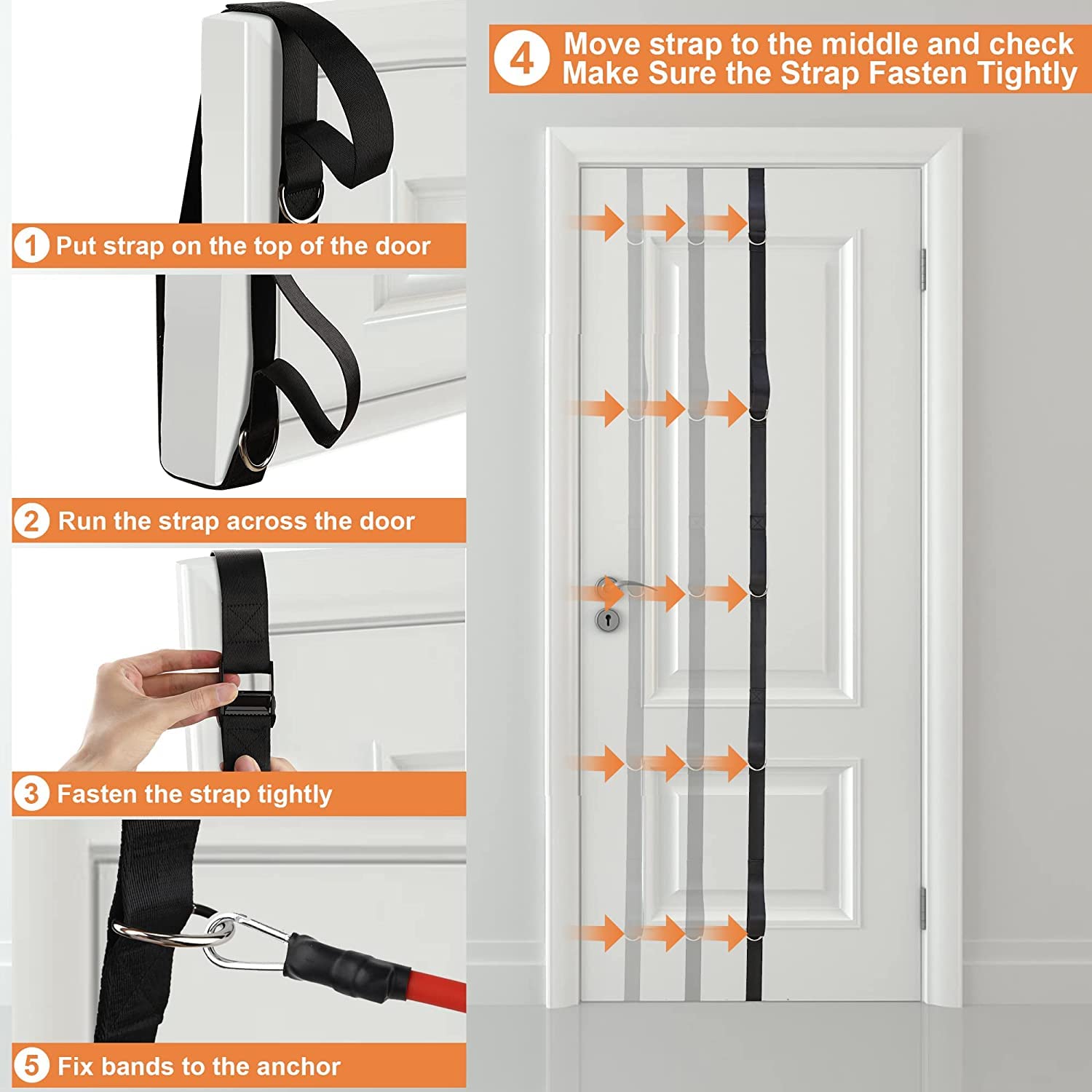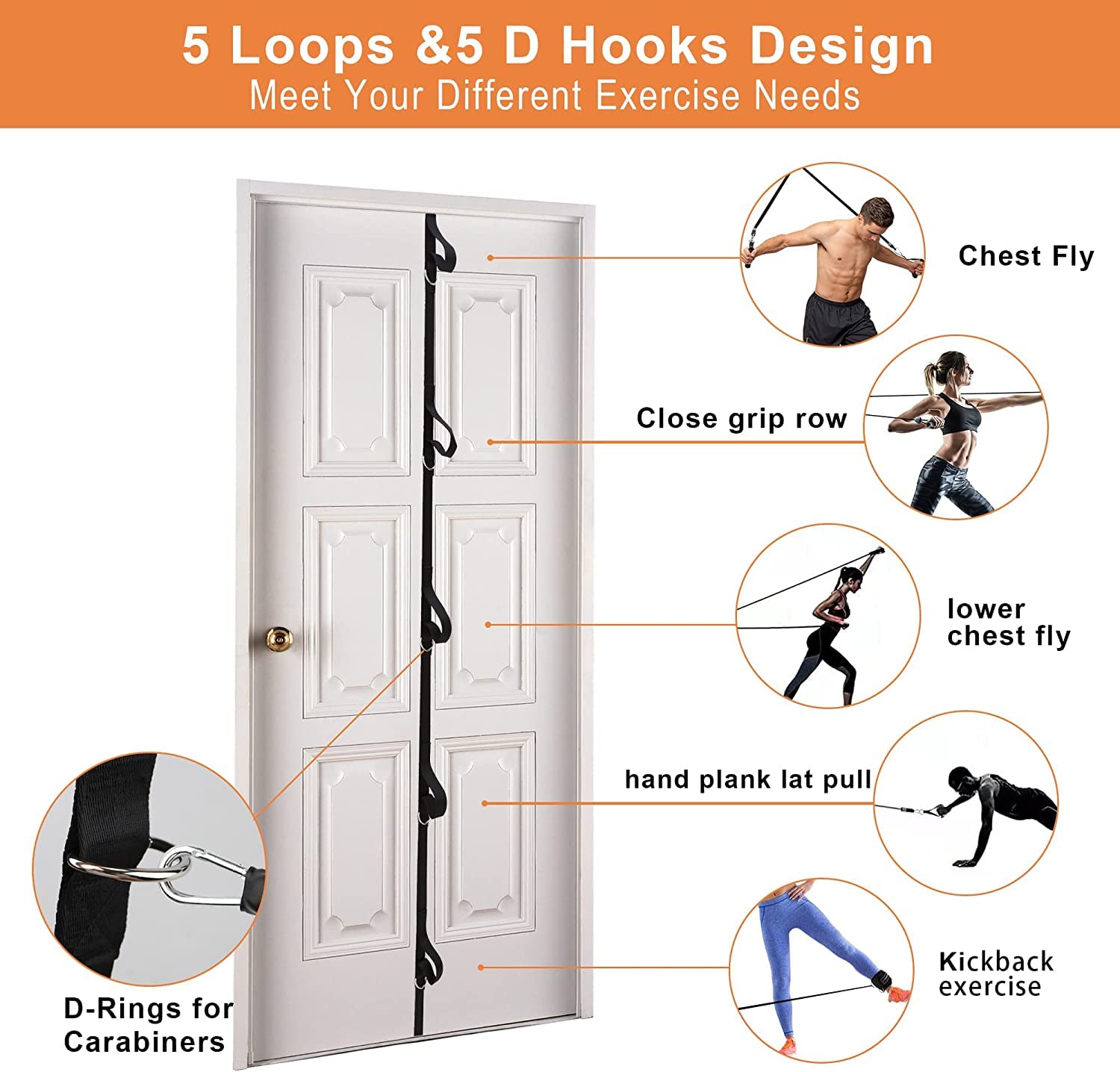 【5 Loops Design Enable You Doing Different Exercise】Our door anchor strap are perfect work with your resistance bands(not included), 5 loops at different heights enables you to vary you exercises to hit all of the key body parts.