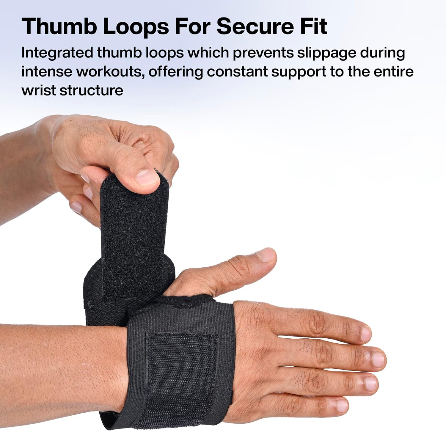 The strong thumb loops ensure a secure fit, keeping the wrap firmly in place on your hand and wrist during every lift.