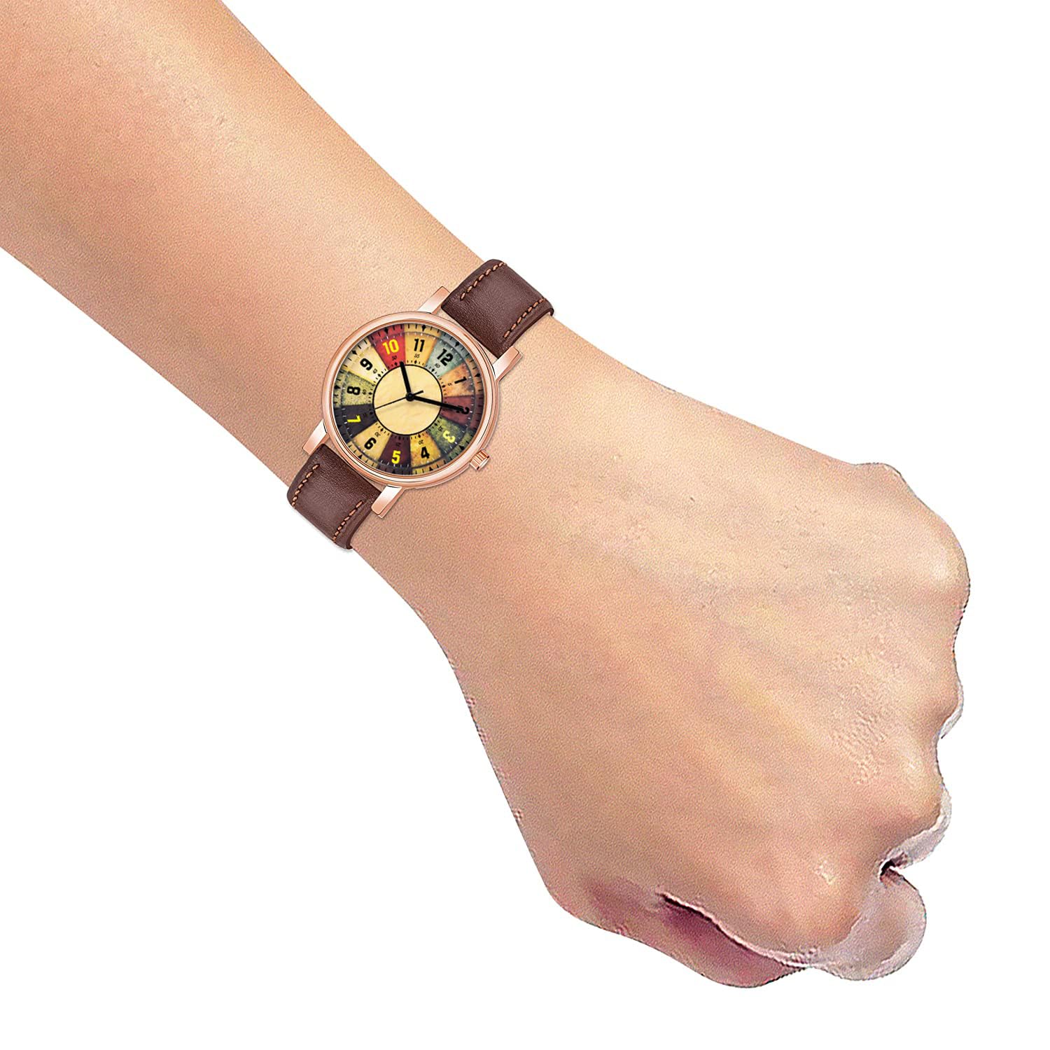 Gadgets World Analog Round Yellow Dial Stylish Brown Strap Creative Fashion Wrist Watch for Women and Girls, Pack of 1 – C36-VINTAGE-BRW-L