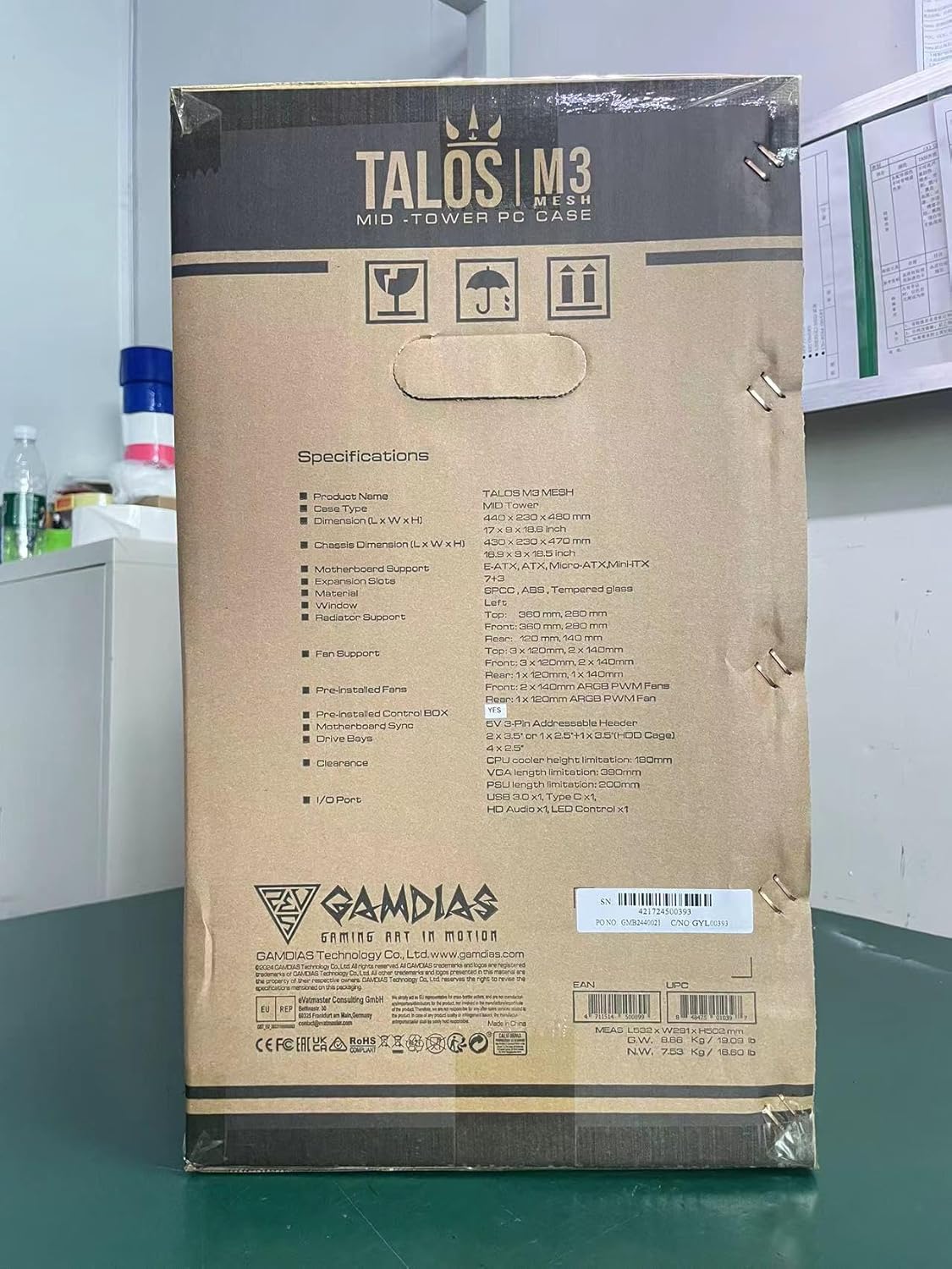 The Gamdias TALOS E3 MESH ELITE Mid Tower PC Case is engineered for enthusiasts seeking a blend of high performance and aesthetics. This black case features panoramic tempered glass for a sleek display of your components, while three 140mm PWM ARGB fans provide superior cooling and a burst of color. With support for dual radiators up to 360mm and 280mm, it’s ready for the most demanding liquid cooling setups. Compatible with a range of motherboards from E-ATX to Mini-ITX, and with ample room for GPUs up to 390mm and PSUs up to 200mm, it accommodates powerful builds with ease. The magnetic dust filter and smart cable management ensure your PC not only runs efficiently but also maintains a clean look. The TALOS E3 MESH ELITE is the perfect chassis for gamers and PC builders who refuse to compromise on performance or style.