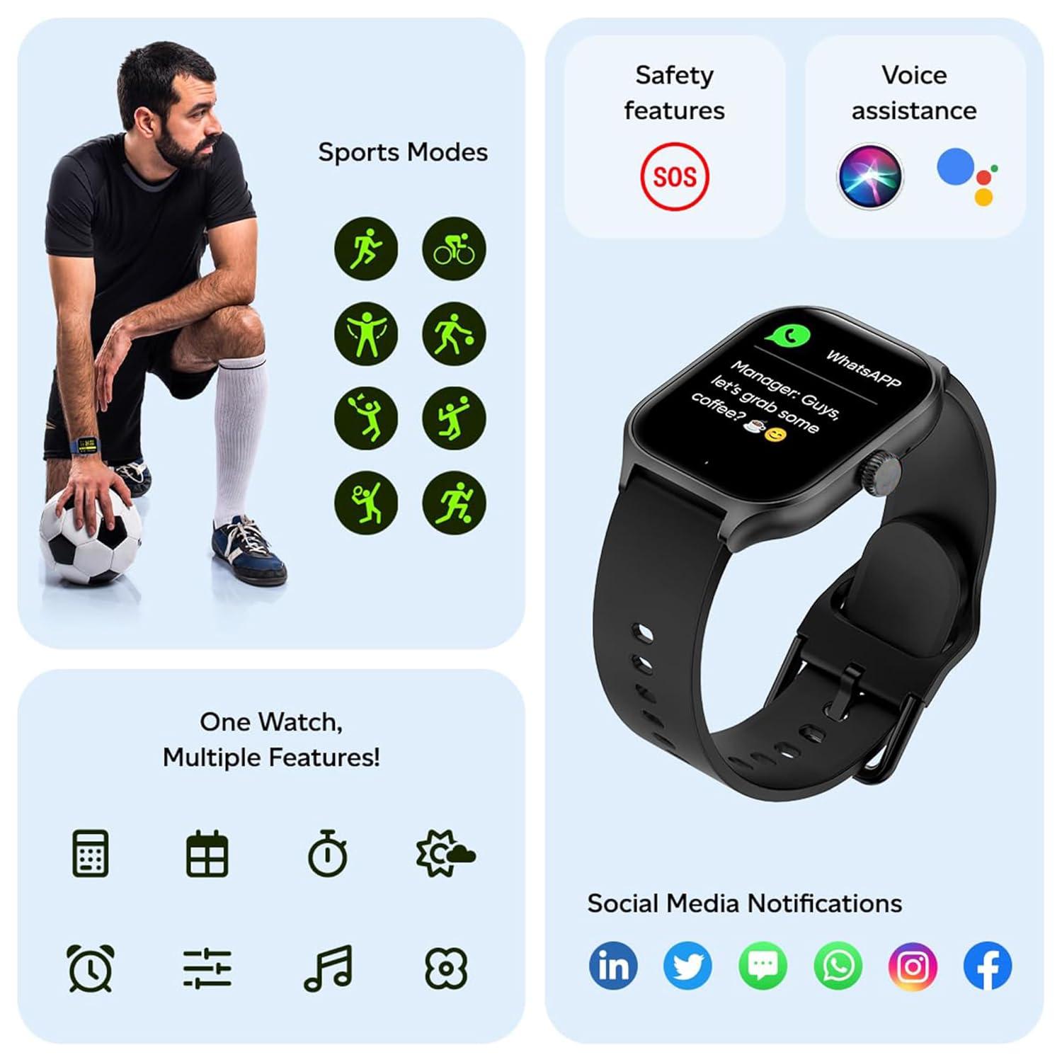 Bluetooth Calling: Stay connected on the go with Bluetooth calling functionality, allowing you to make and receive calls directly from your smartwatch.