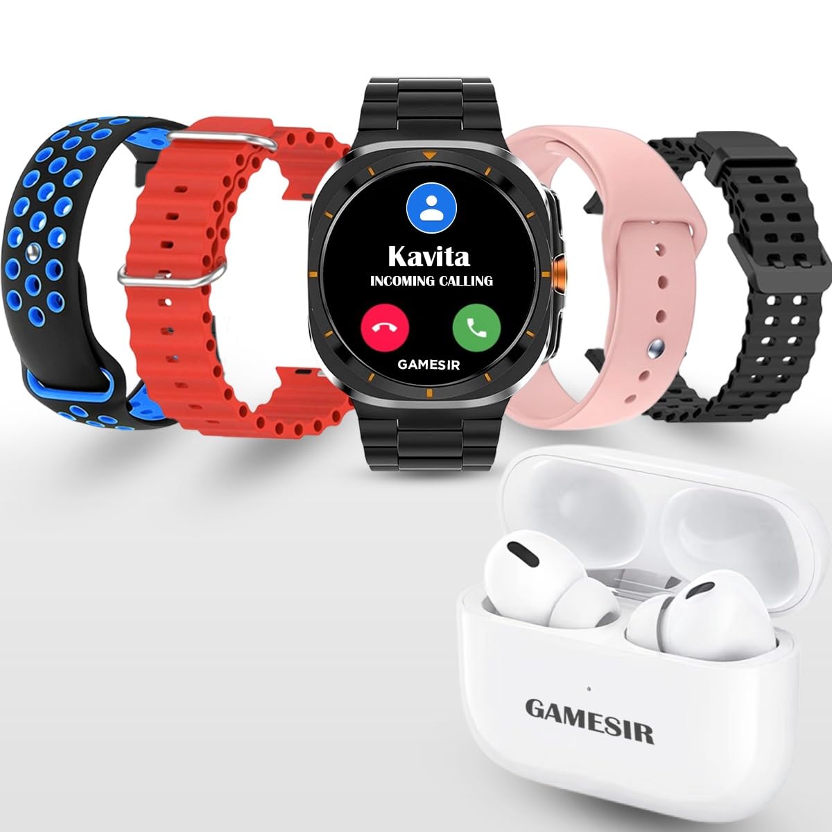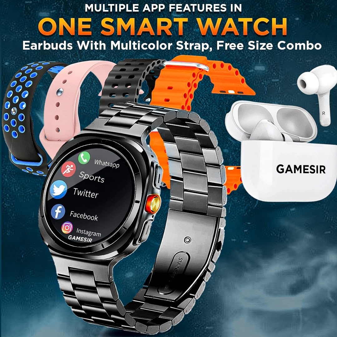 ๐น All-in-One Smartwatch Combo: Get everything you need in one powerful bundle โ advanced fitness watch, 5 interchangeable straps, TWS earbuds, and a magnetic charger. Perfect for workouts, daily wear, or travel.