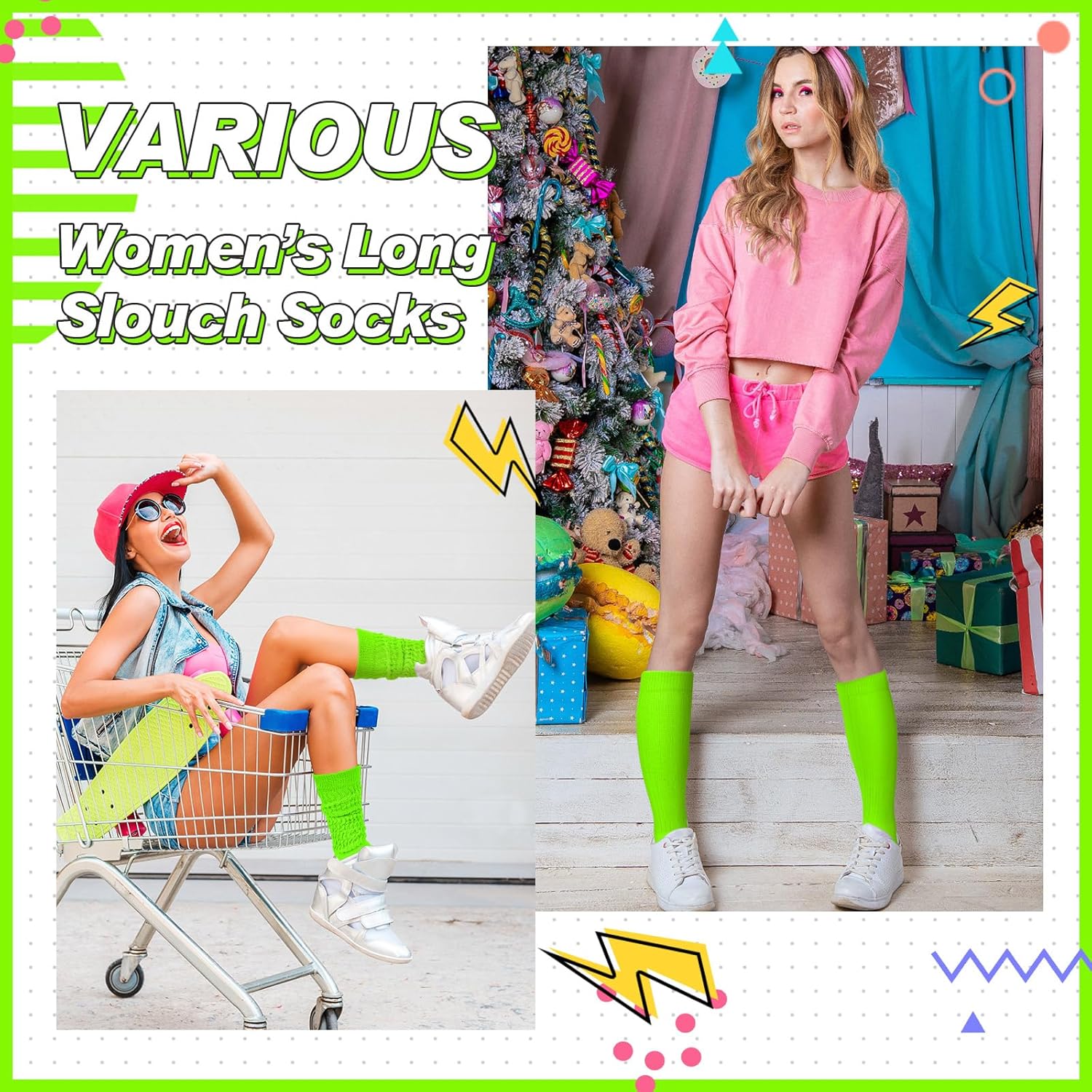 Customers love these neon socks for their bright colors, with one mentioning they’re perfect for Halloween costumes, and appreciate their soft, cozy feel and good fit. They are particularly suitable for 80s-themed parties, and customers find them durable, with one noting they hold up well after multiple washes. The thickness receives mixed feedback, with several customers finding them somewhat thin.