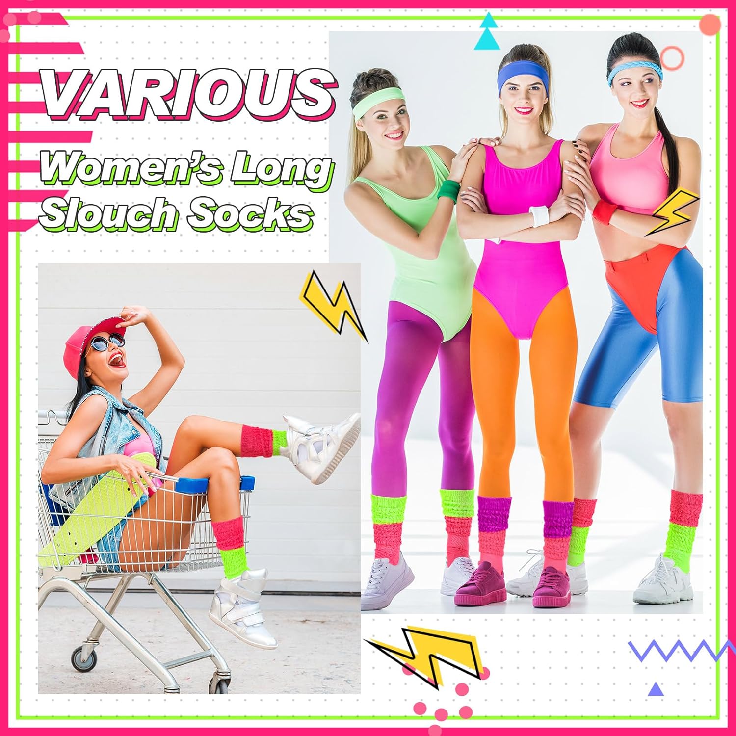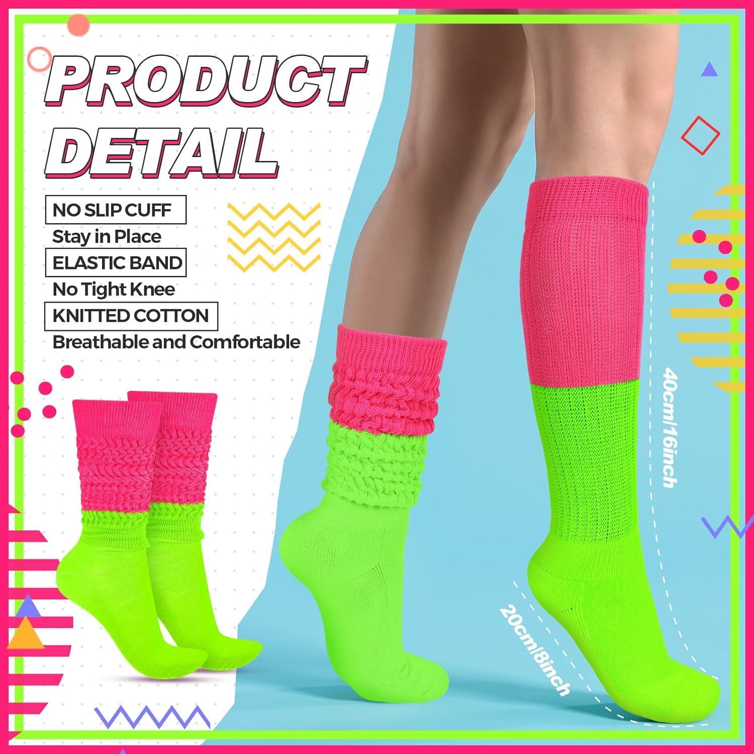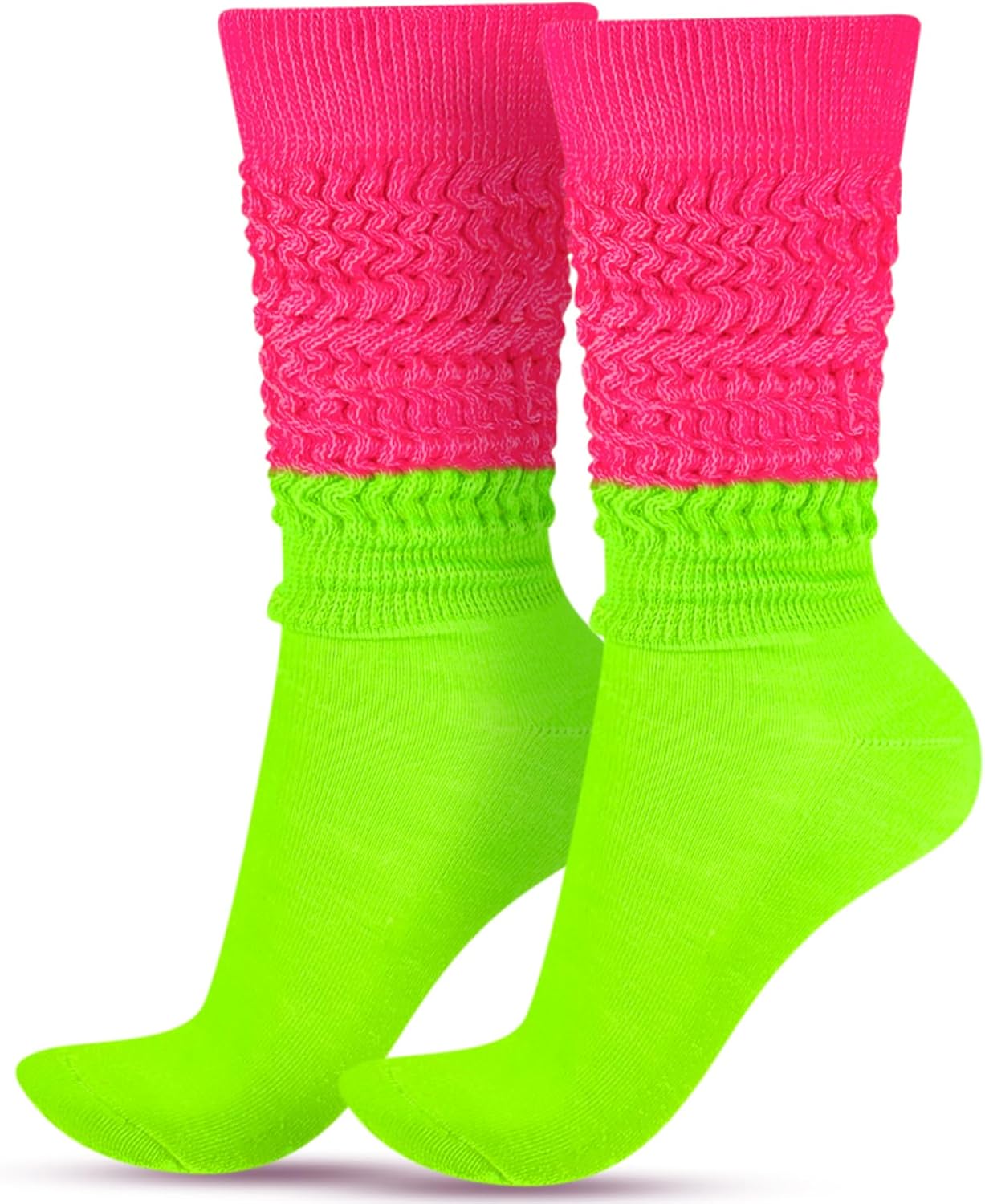 Customers love these neon socks for their two-color design and soft, cozy feel, with one mentioning they work well for 80s-themed parties. They receive positive feedback for their durability, with one customer noting they hold up well after multiple washesings, and functionality, with one mentioning they worked great for an 80s outfit. The thickness receives mixed reviews, with several customers finding them somewhat thin.