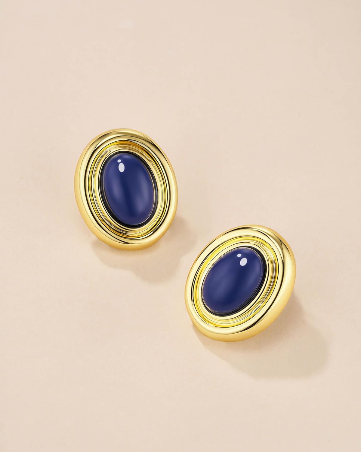Gold Medium Oval Button Chunky Statement Earrings for Women by SNGIA, (Turquoise, Carnelian) Bold Handmade Exaggerated Dome Retro Rounded Button Trendy Bohemian Gemstone Stud Jewelry Gifts, Unique Vintage Baroque Stone Summer Beach Fashion Earrings Accessories, Round Thick Circular Nickle Free Huggies Earrings.