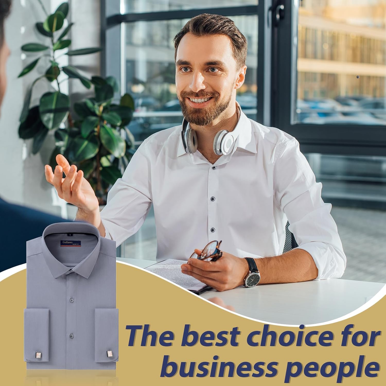 Customers find the dress shirt excellent in appearance, with one noting it can be dressed up or down, and appreciate its smooth, fantastic-feeling material and high-quality construction. Moreover, the shirt comes with attractive cuff links and offers great value, with one customer mentioning it worked well for a wedding. However, the fit receives mixed feedback, with some finding it perfect while others report sizing issues, and the color accuracy is also mixed, with some saying it’s on point while others find it too dark.