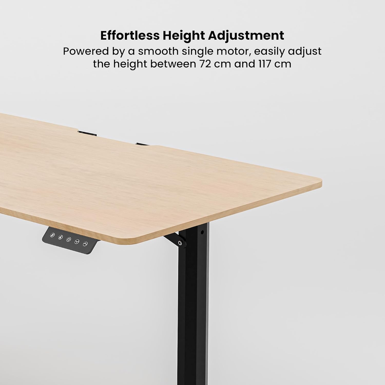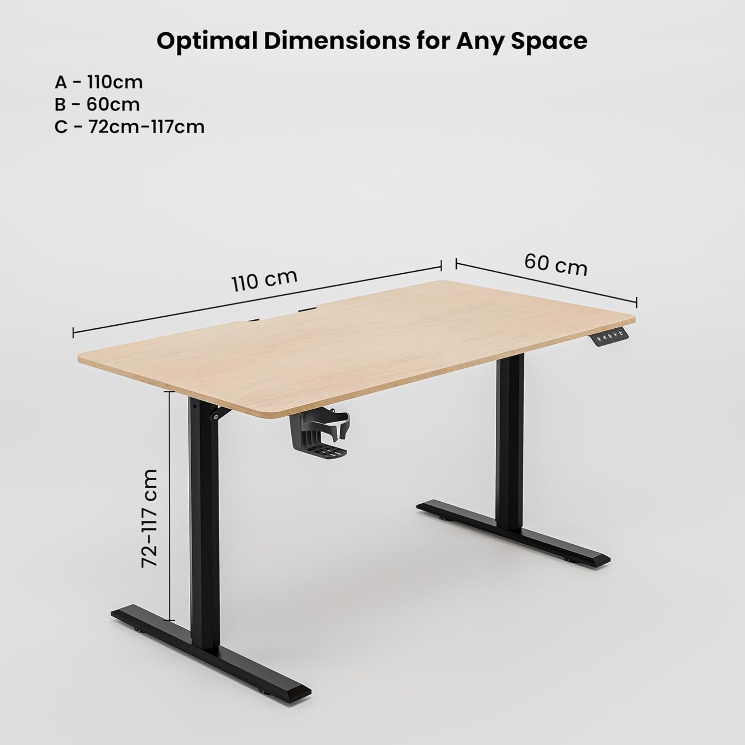 𝐇𝐄𝐈𝐆𝐇𝐓 𝐀𝐃𝐉𝐔𝐒𝐓𝐀𝐁𝐈𝐋𝐈𝐓𝐘 𝐏𝐀𝐈𝐑𝐄𝐃 𝐖𝐈𝐓𝐇 𝐀 𝐌𝐄𝐌𝐎𝐑𝐘 𝐏𝐑𝐄𝐒𝐄𝐓 𝐅𝐄𝐀𝐓𝐔𝐑𝐄 : This table is a perfect solution for those who need breaks from extended work or play. This electrical height adjustable desk can be preset to 2 height positions ( ranging between 72 cms & 117 cms). The memory preset option of this table helps you save your sitting & standing height that can be achieved with a press of a button, saving time & effort of manually adjusting it every time