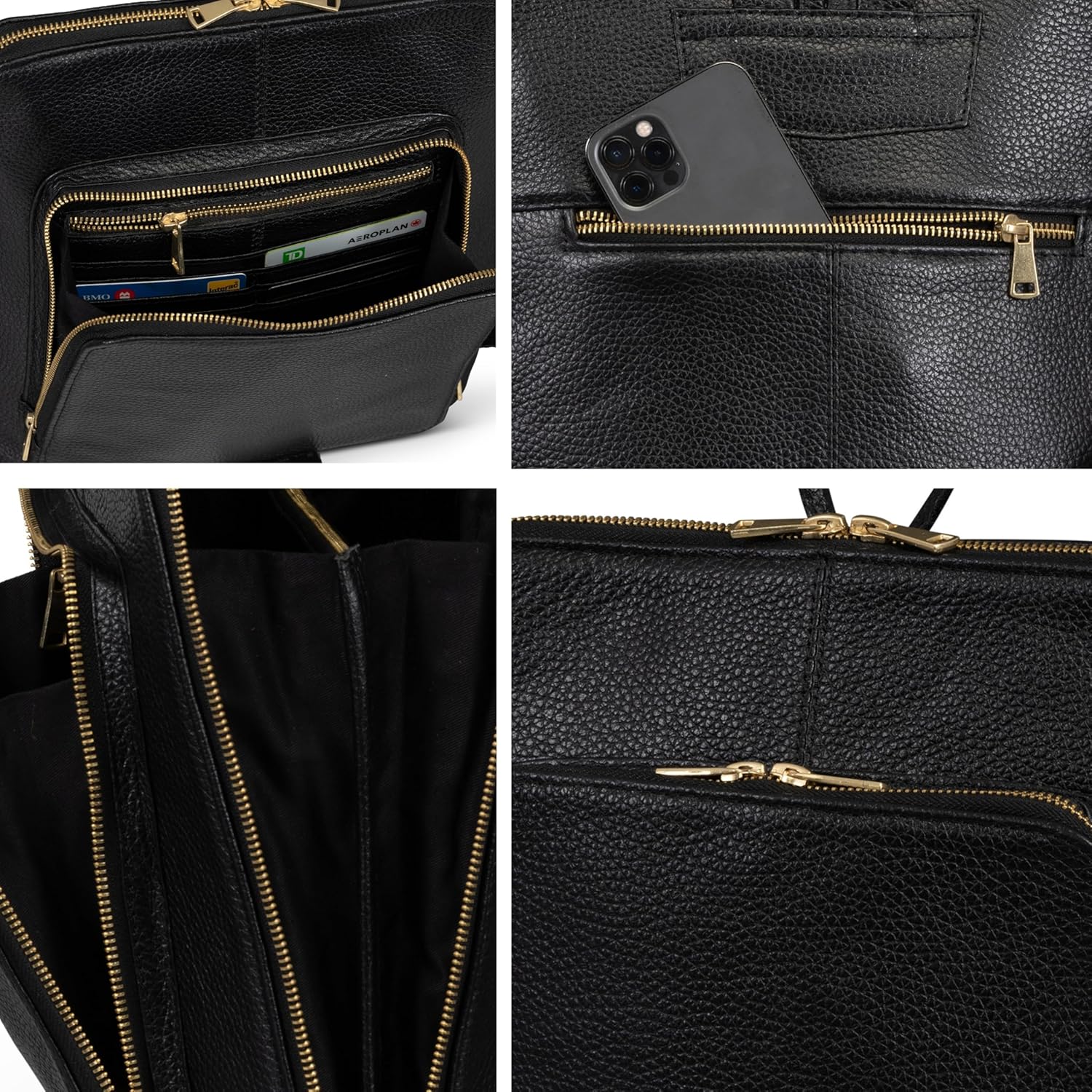 π CRAFTSMANSHIP MEETS INGENUITY – Main compartment with 2-way zip, 1 padded laptop pocket fits up to 16″ laptop, 6 card slots, 2 pen sleeves, 1 phone pocket, 1 rear zipper pocket for you passport, boarding pass, and wallet, keeping all your essentials within easy reach. Adjustable shoulder straps made of full-grain leather. Metal feet ensure the leather is protected when the black backpack purse is placed down.