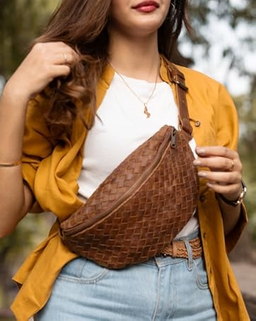 Handcrafted Travel Companion with Premium Full-Grain Leather Spacious Compartment Discreet Back Zip Pocket and Adjustable Leather Strap